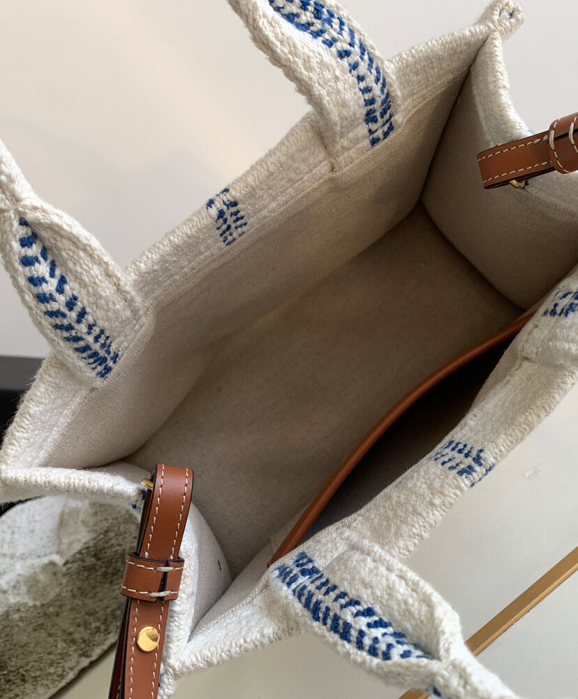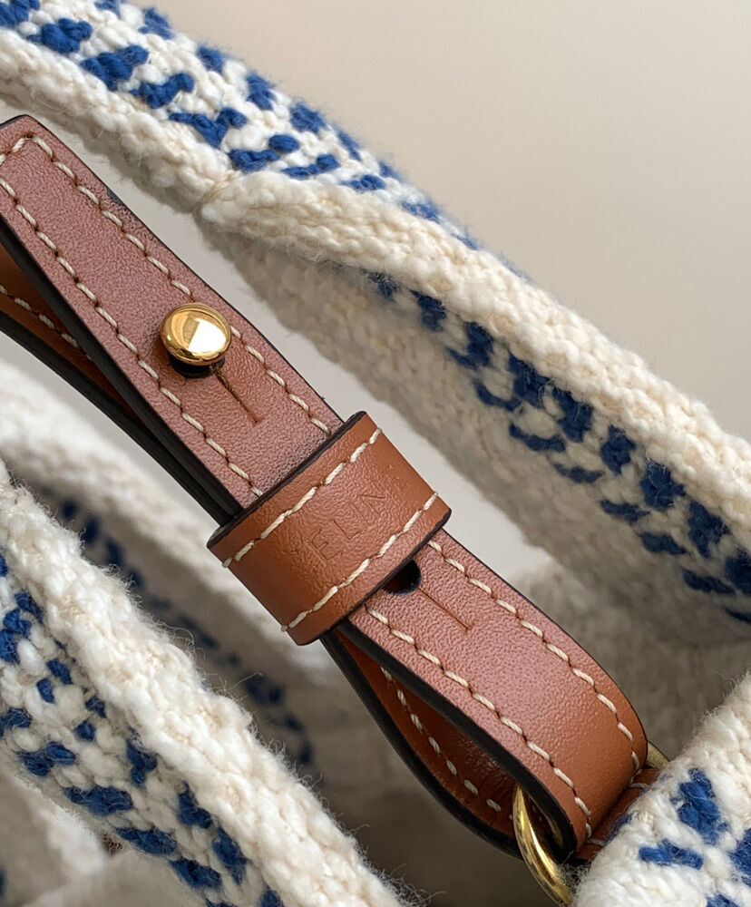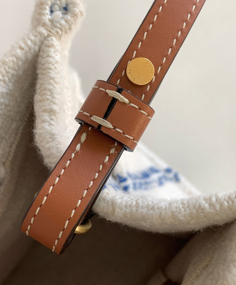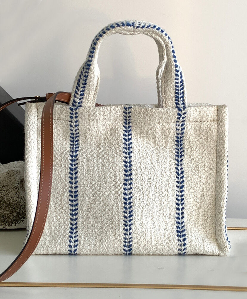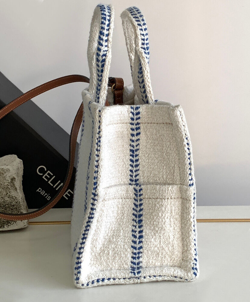 Celine Small Cabas Thais In Striped Textile And Calfskin Cream