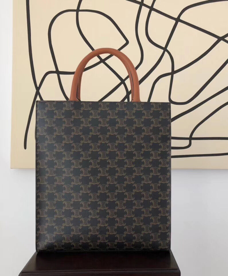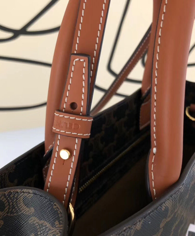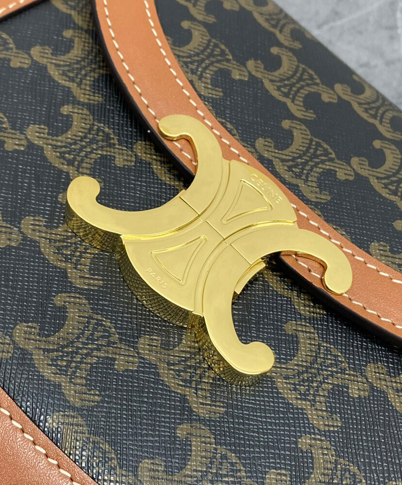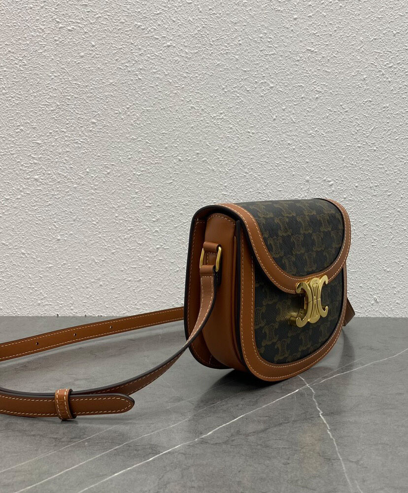 Celine Teen Besace Triomphe In Triomphe Canvas And Calfskin Coffee