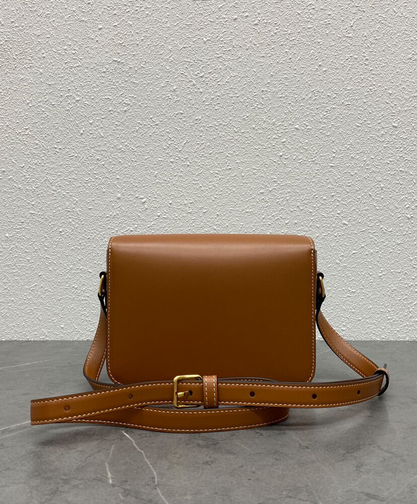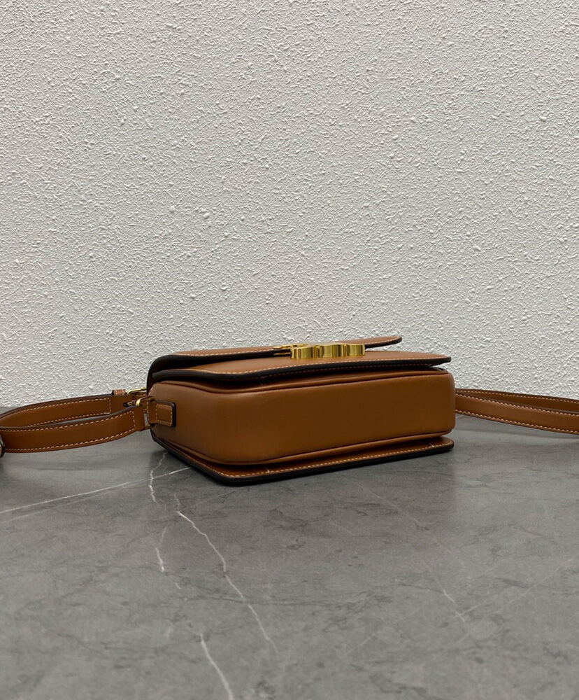 Celine Teen Triomphe Bag In Shiny Calfskin Coffee