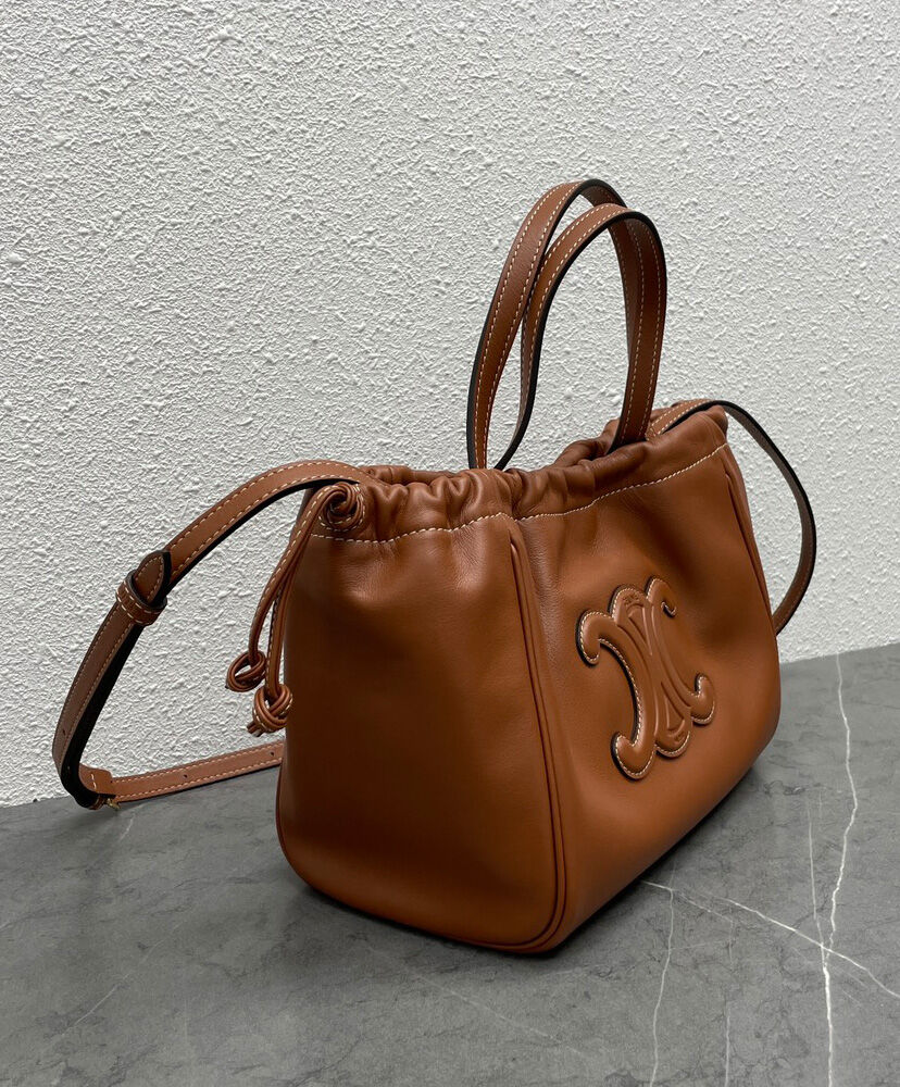 Celine Small Cabas Drawstring Cuir Triomphe In Smooth Calfskin Coffee