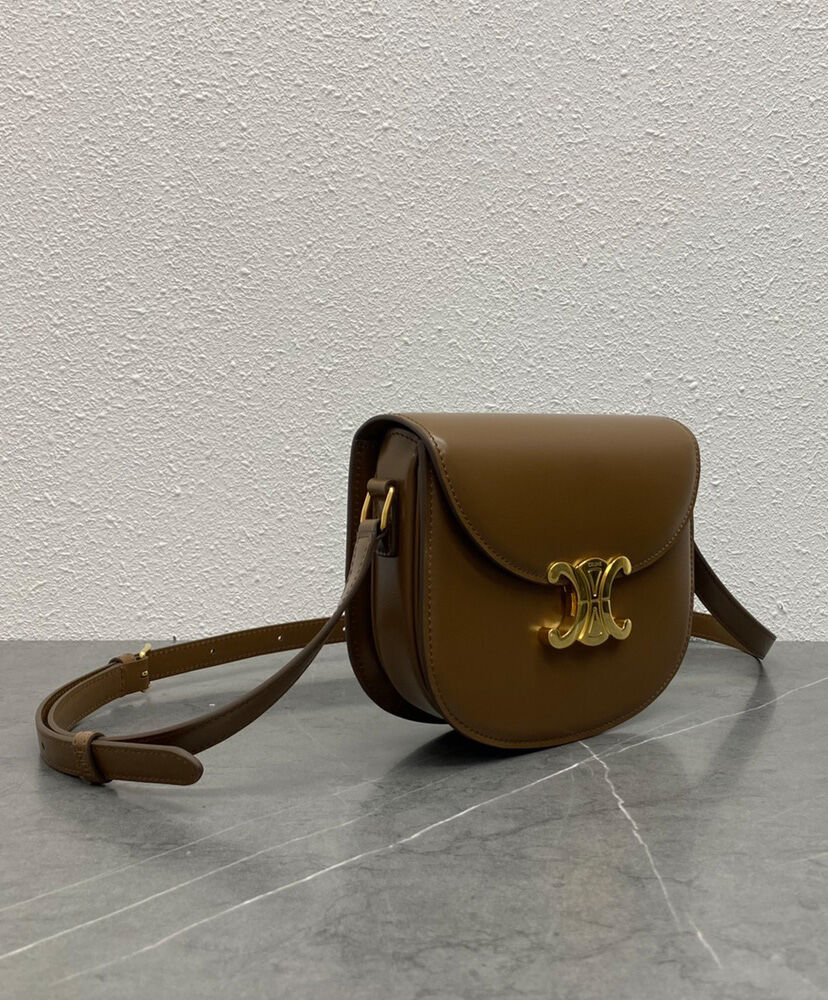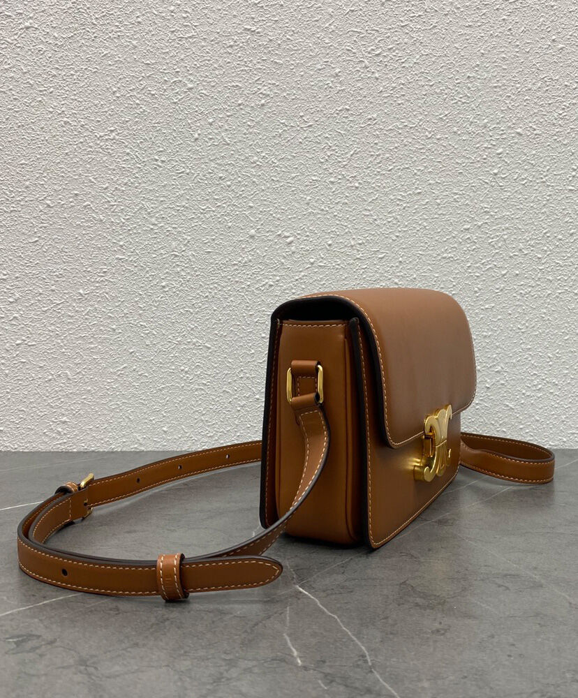 Celine Teen Besace Triomphe In Shiny Calfskin Coffee