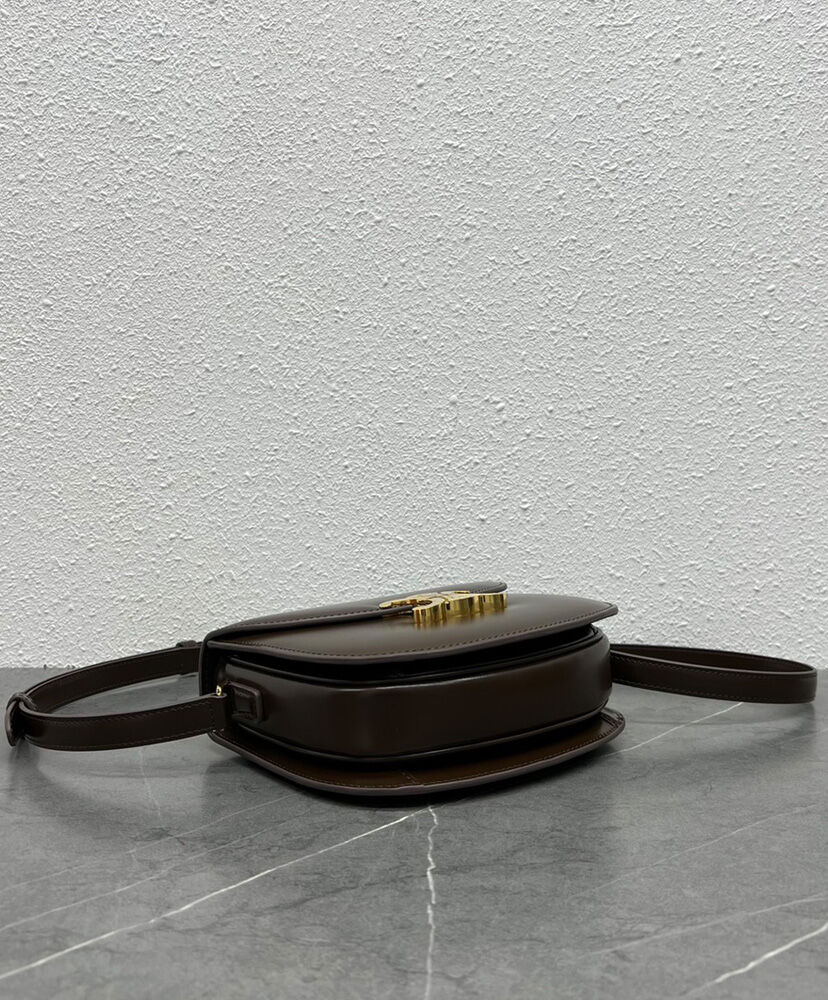 Celine Teen Besace Triomphe In Shiny Calfskin Dark Coffee