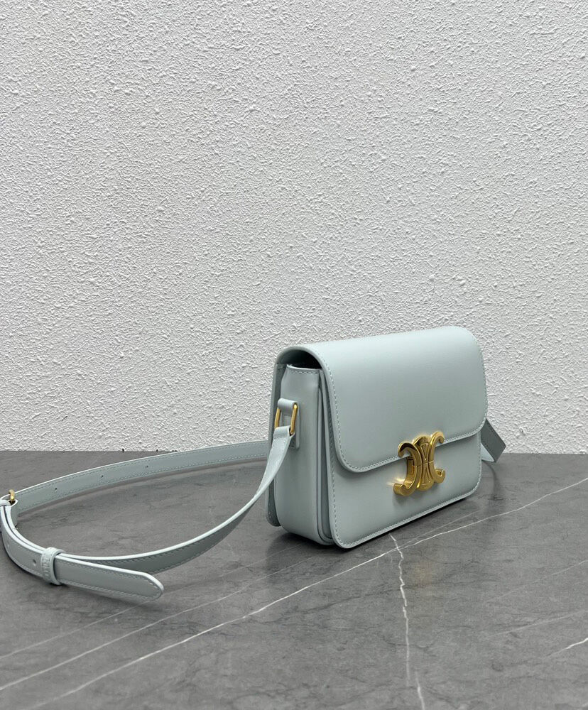Celine Teen Triomphe Bag In Shiny Calfskin Blue