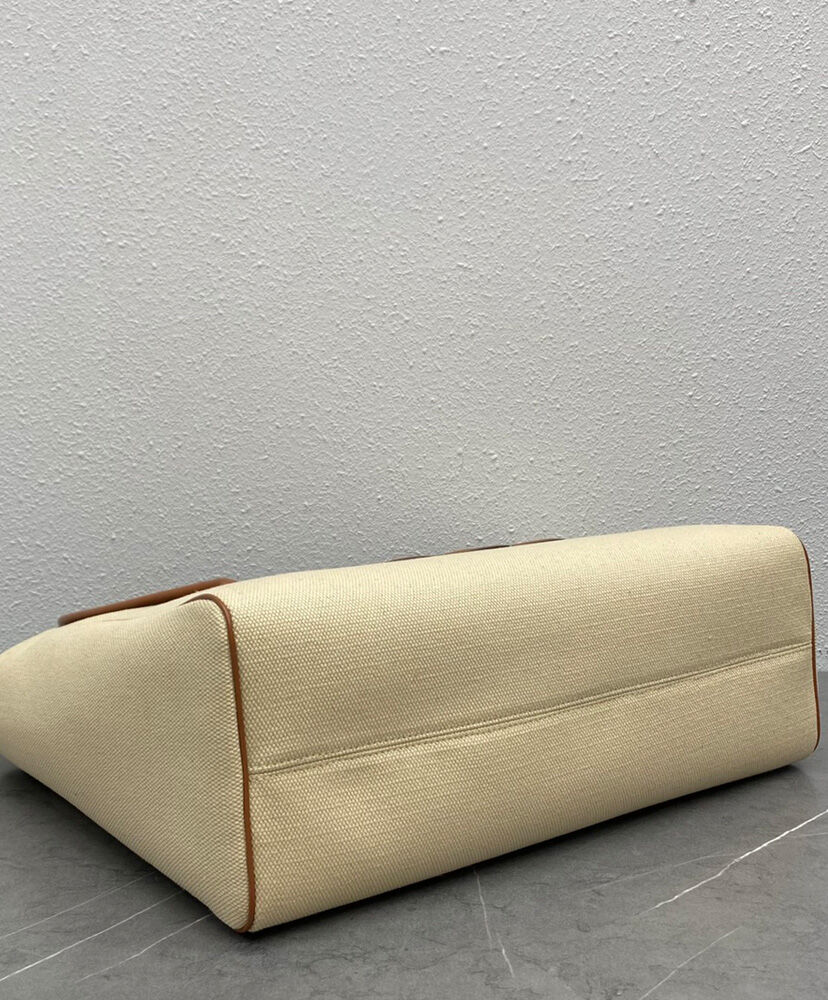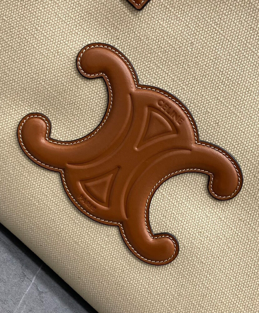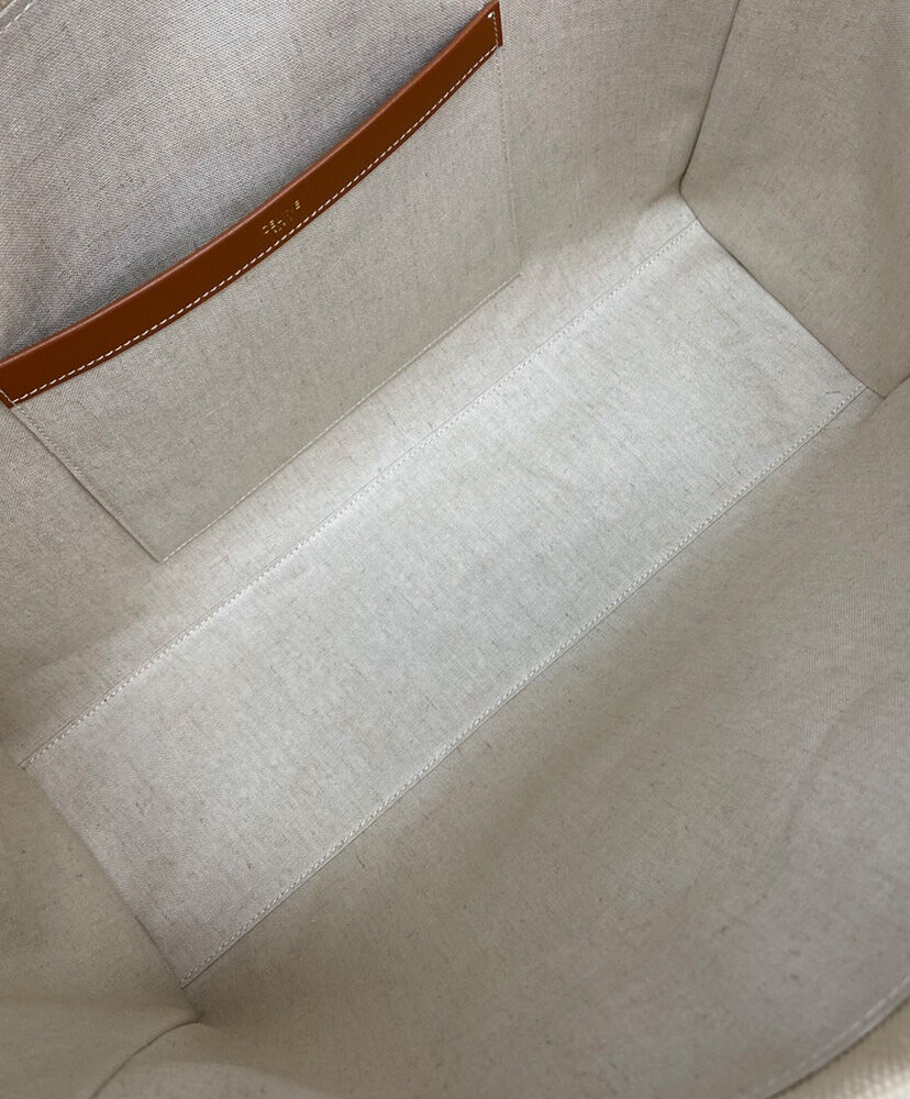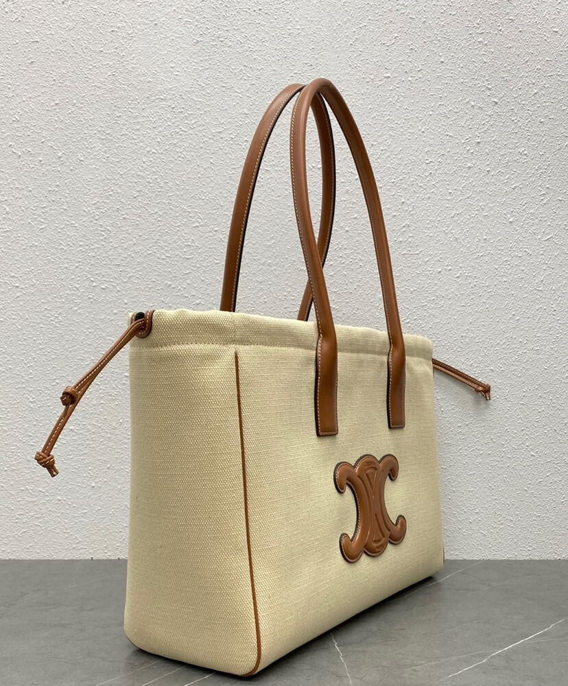 Celine Cabas Drawstring Cuir Triomphe In Textile And Calfskin Cream