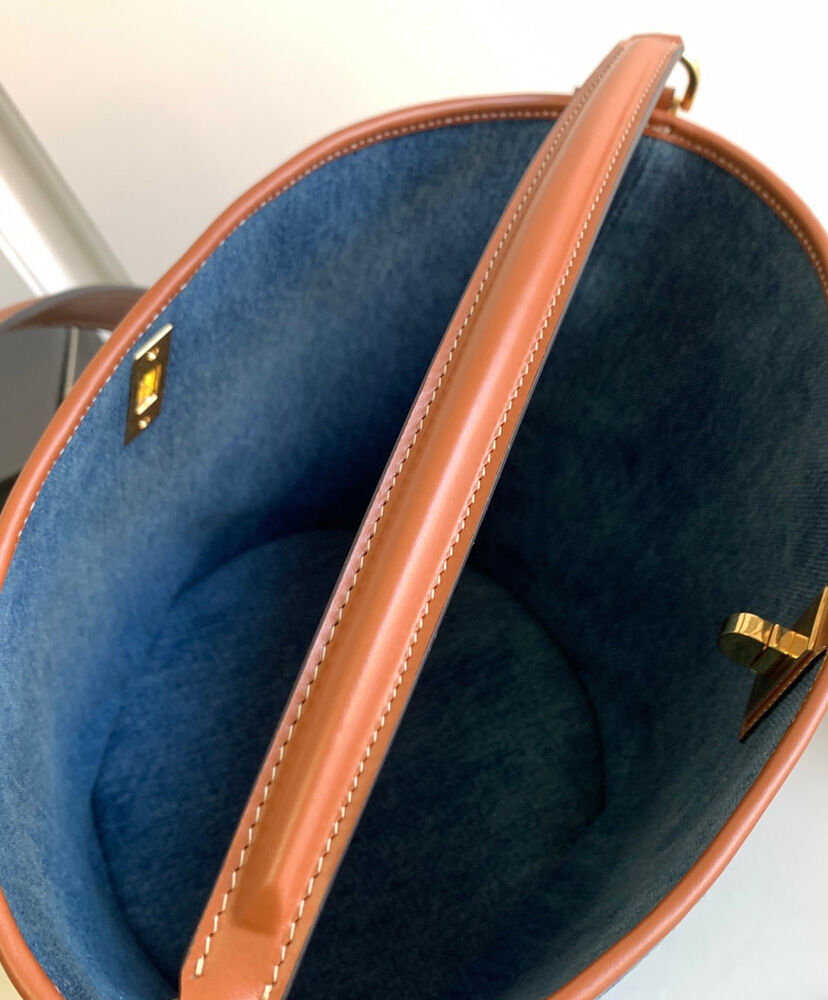 Celine Cabas Drawstring Cuir Triomphe In Smooth Calfskin Coffee