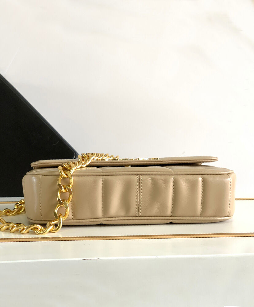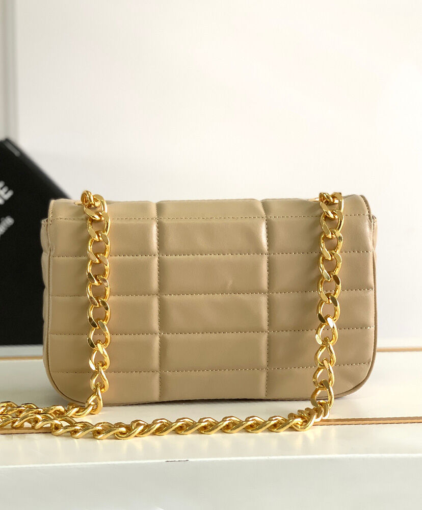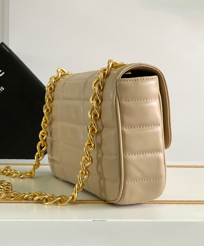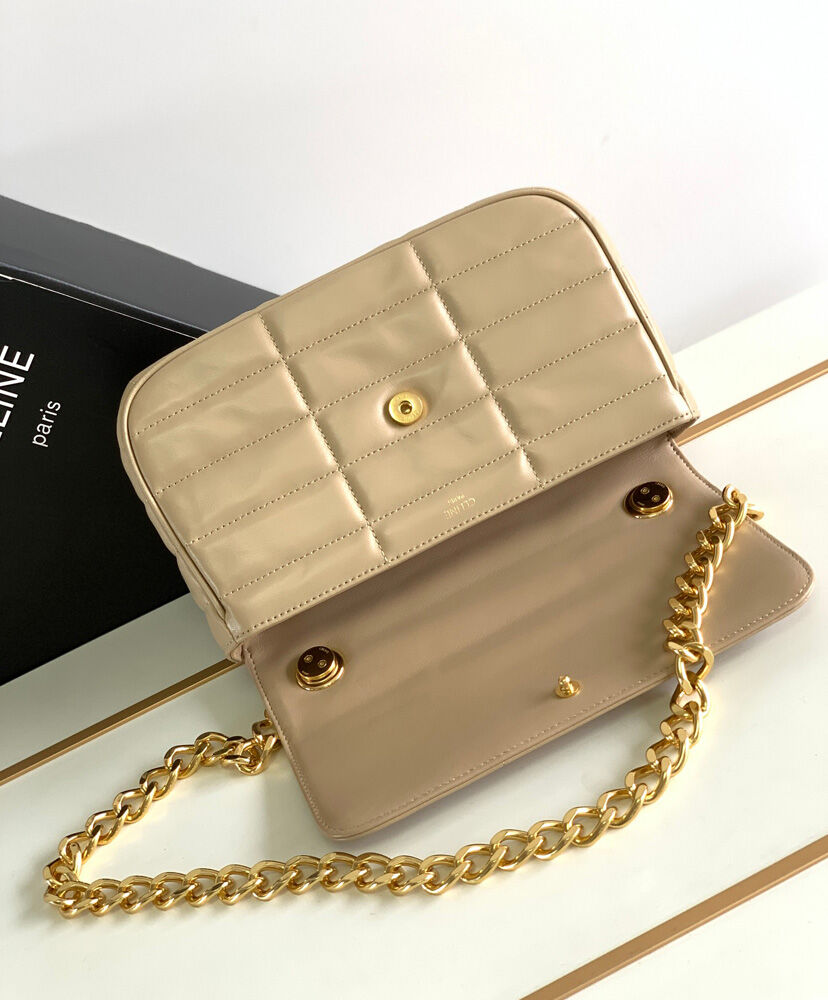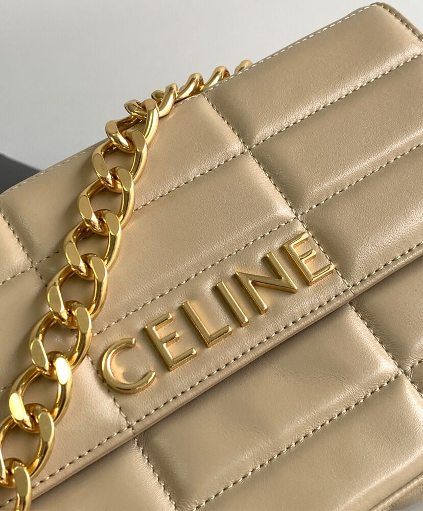 Celine Chain Shoulder Bag Matelasse Monochrome Apricot