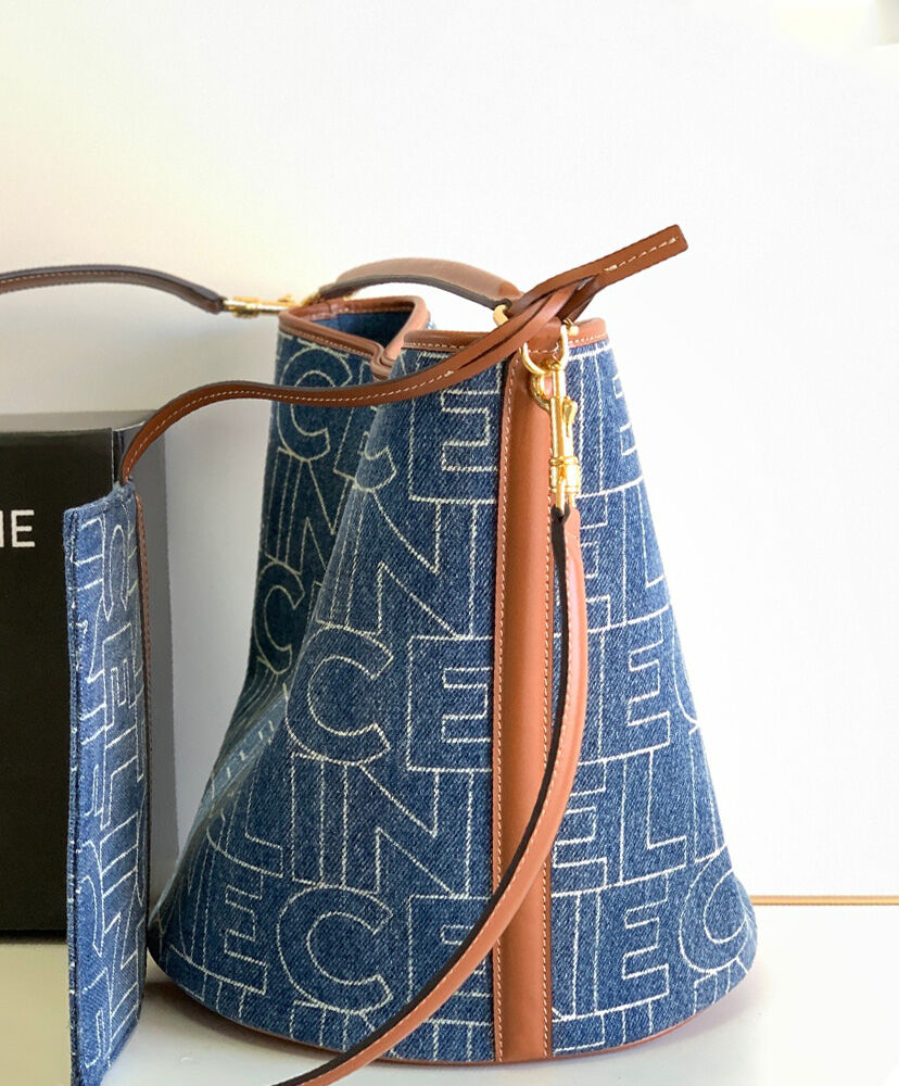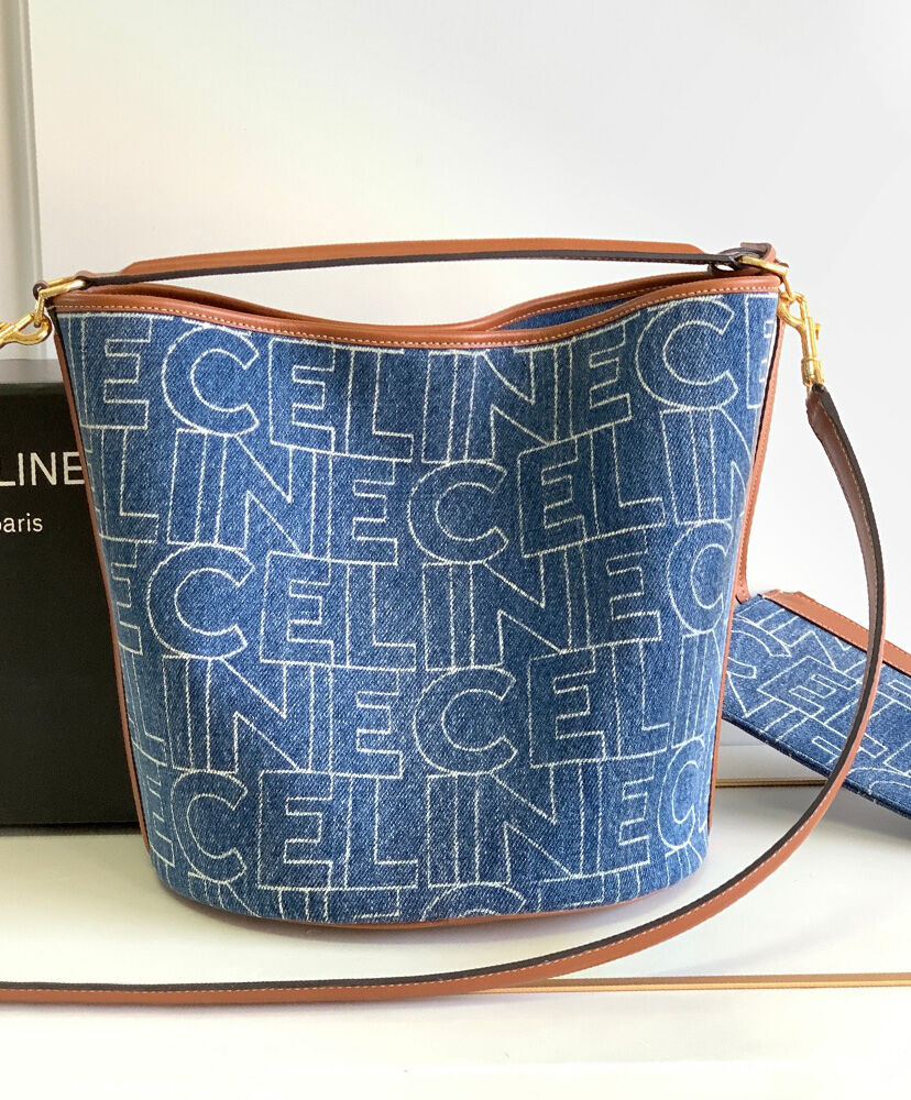 Celine Bucket 16 Bag In Denim With Celine All-Over Print Blue