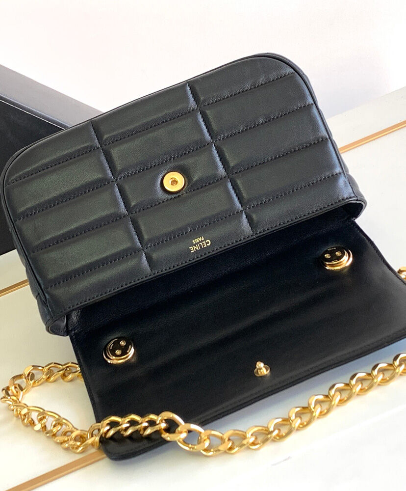 Celine Chain Shoulder Bag Matelasse Monochrome Black