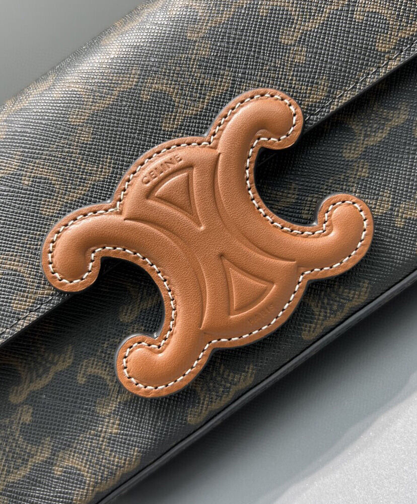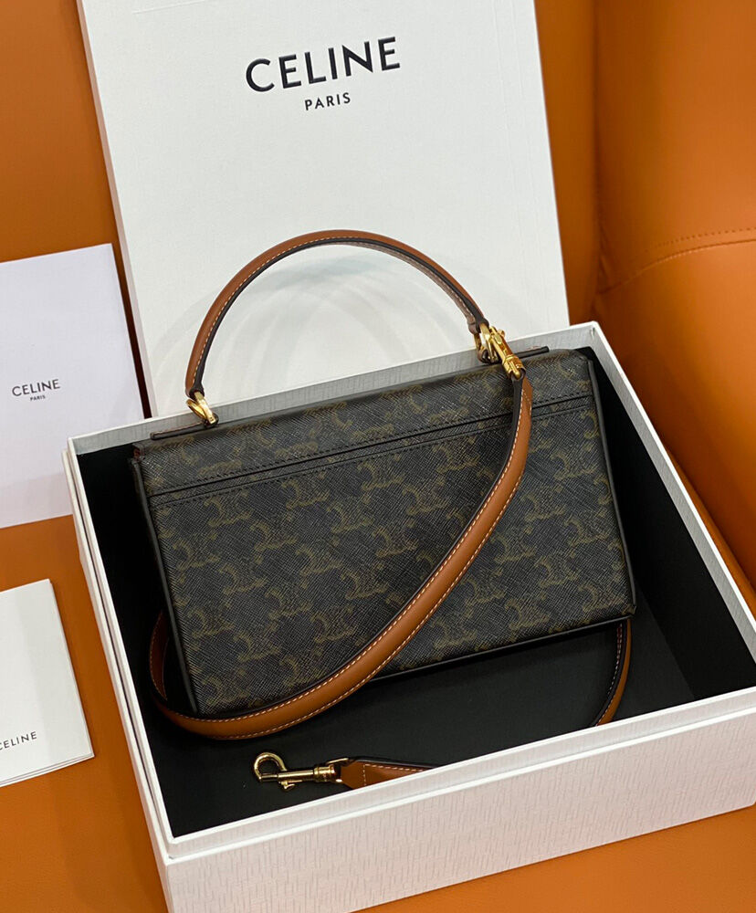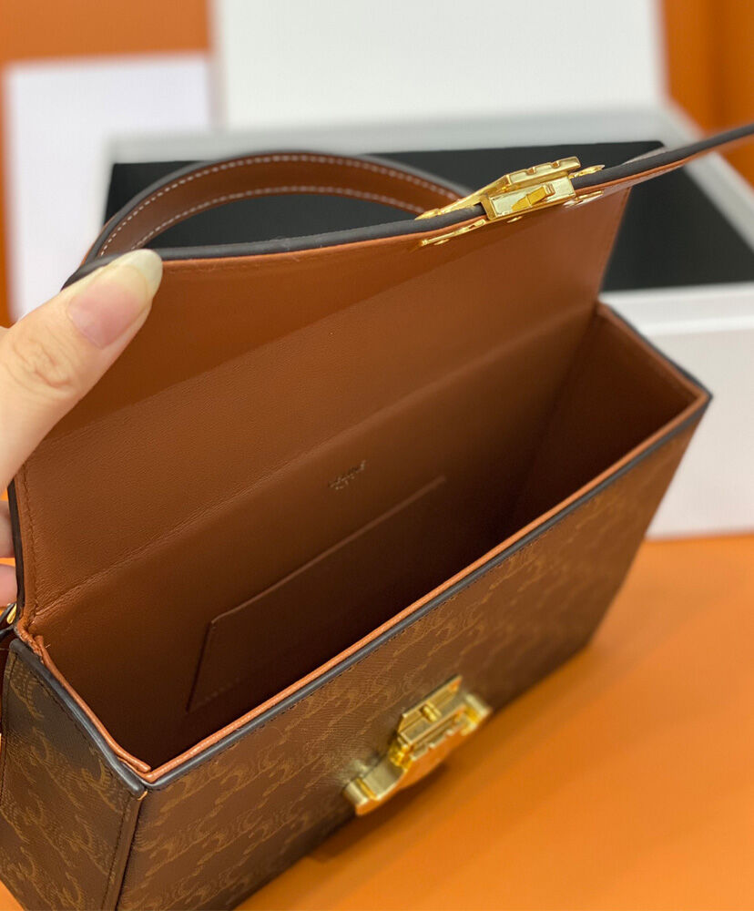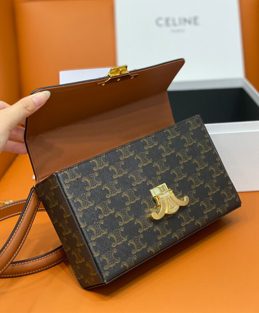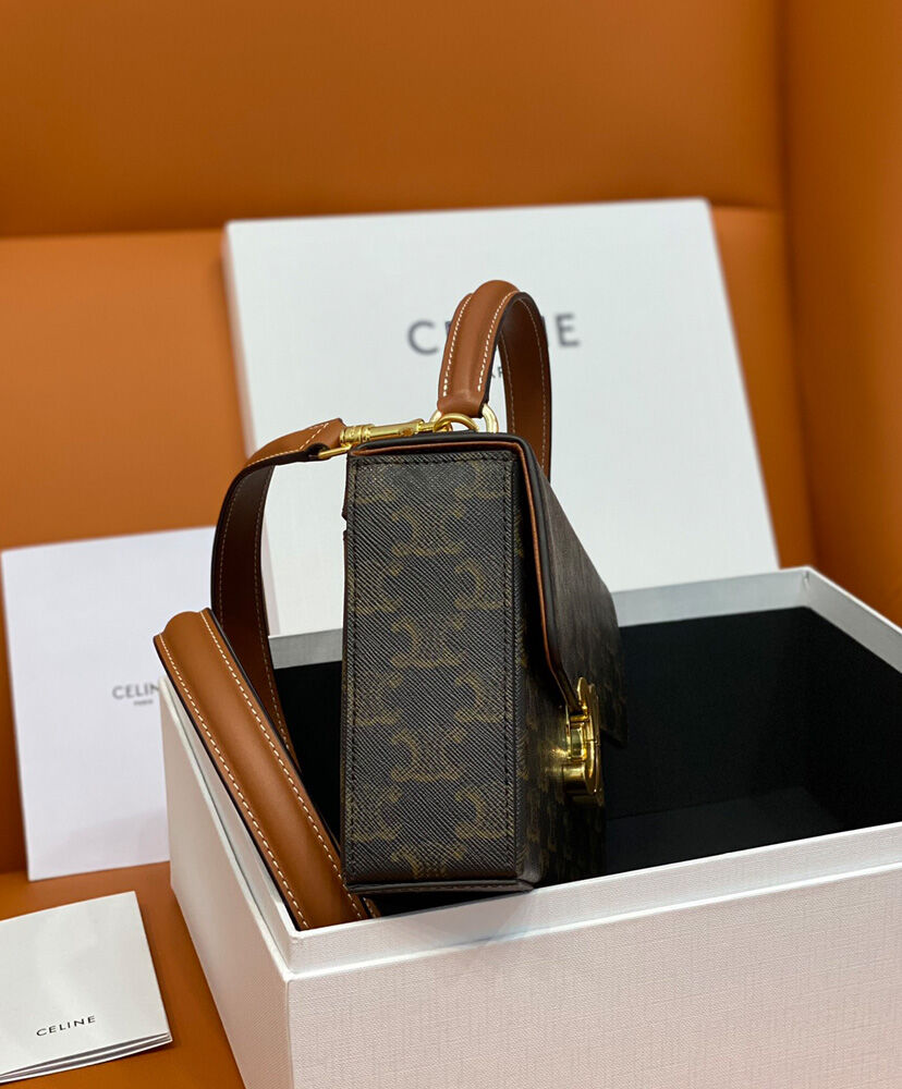 Celine Box Triomphe In Triomphe Canvas And Calfskin Coffee