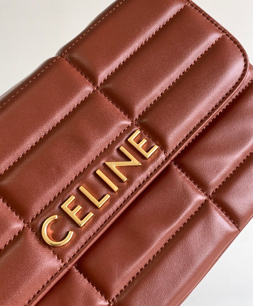 Celine Chain Shoulder Bag Matelasse Monochrome Coffee