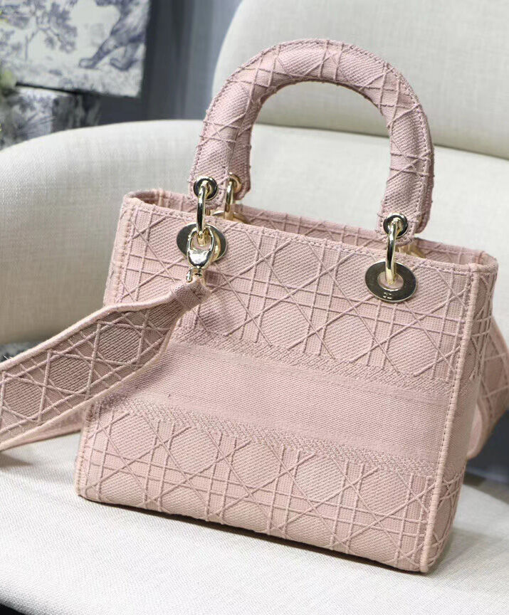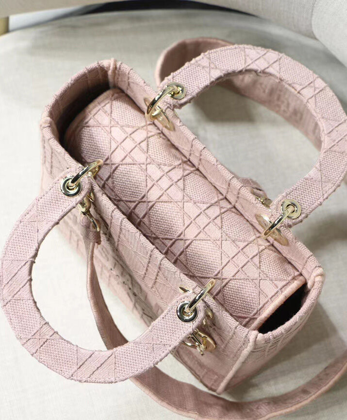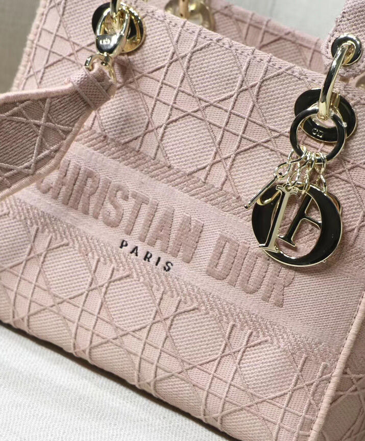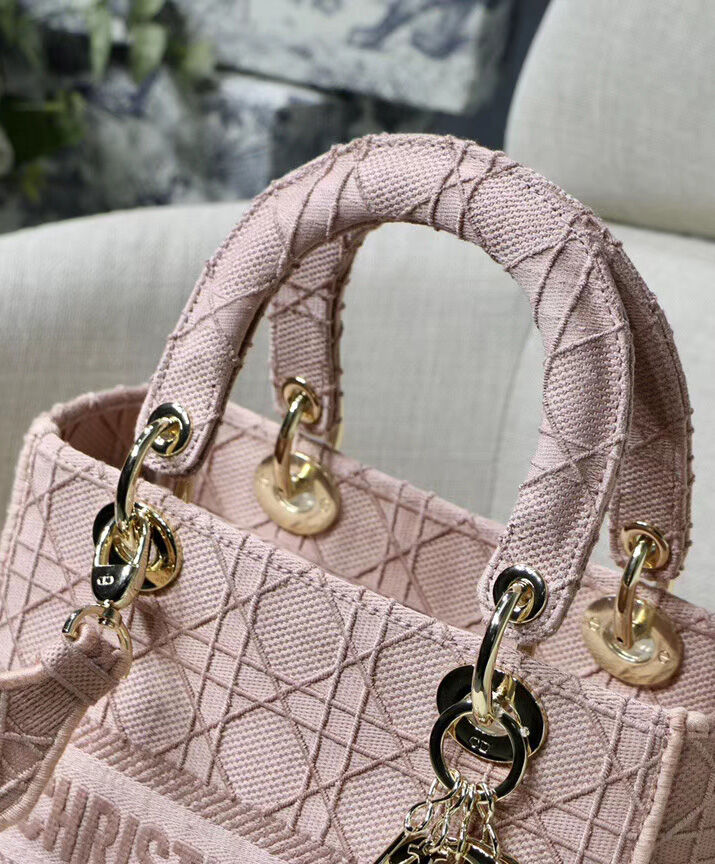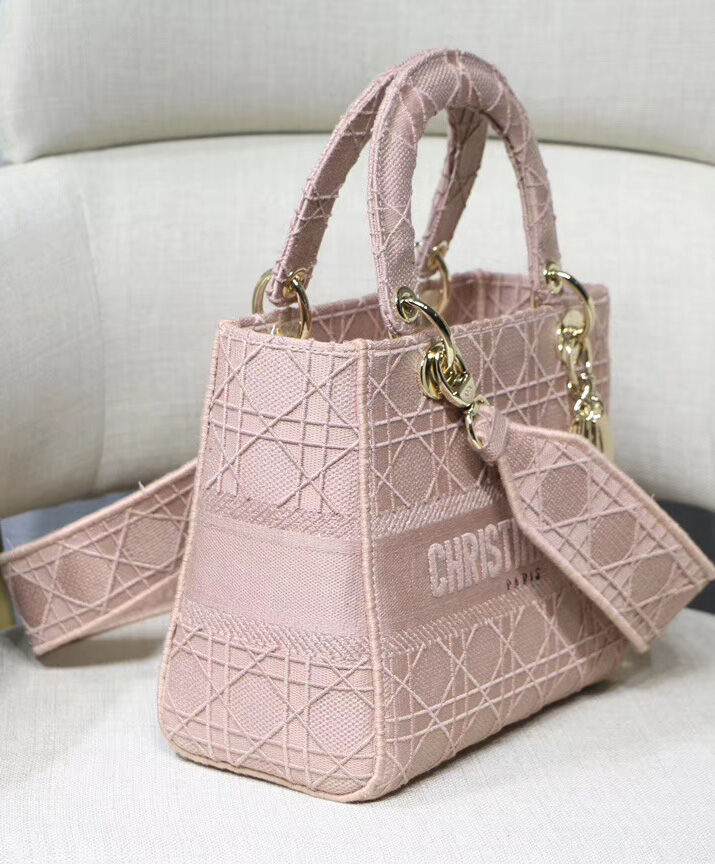 Christian Dior Medium Lady D-lite Embroidered Cannage Bag Pink