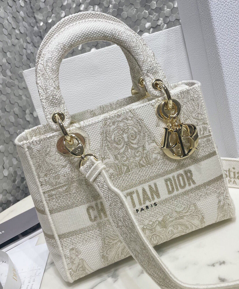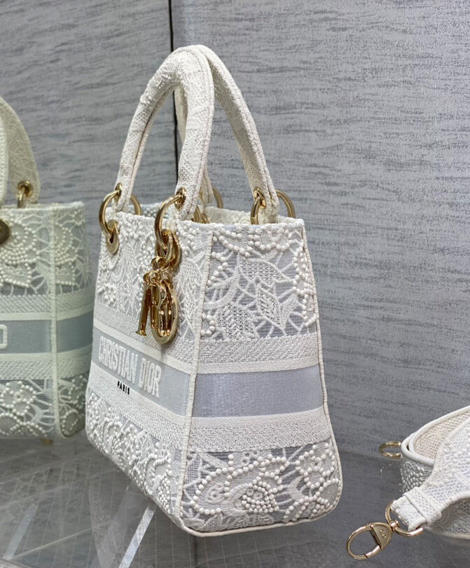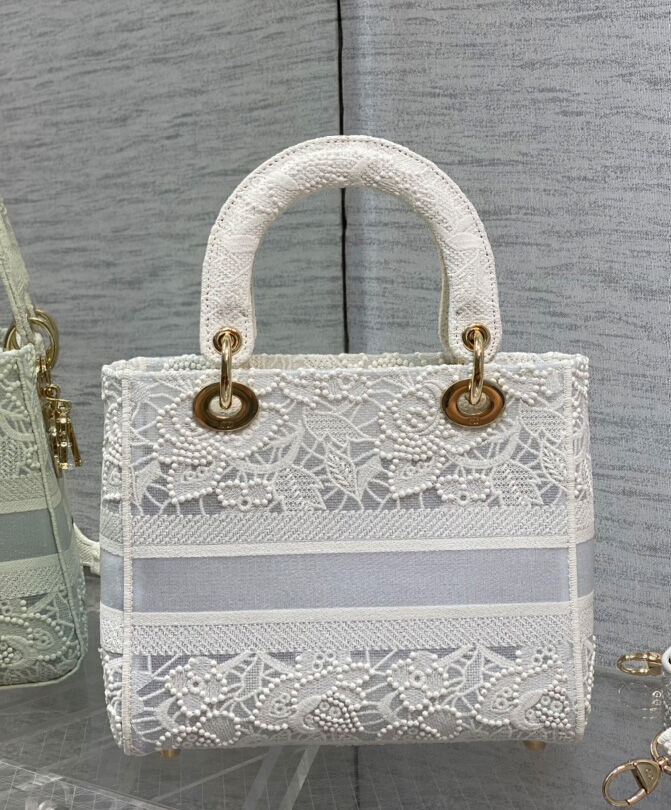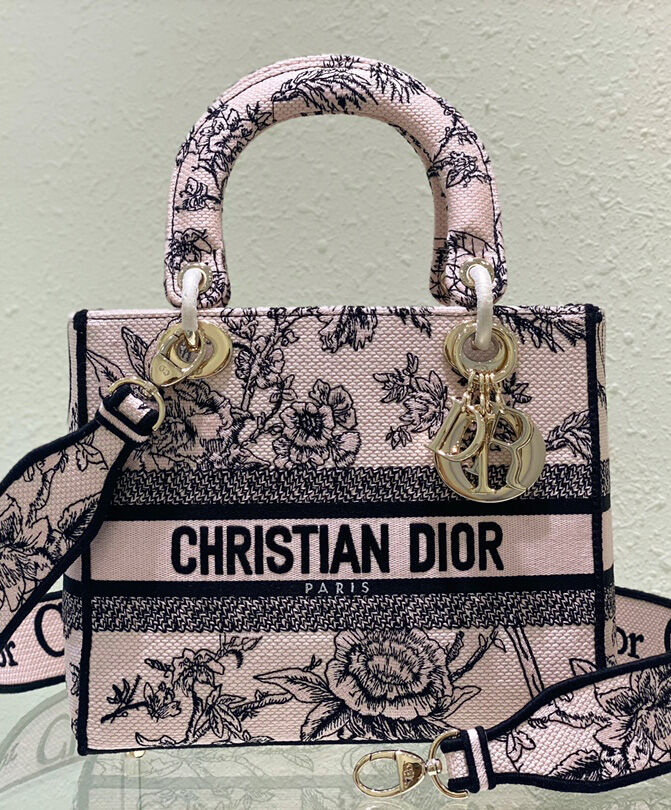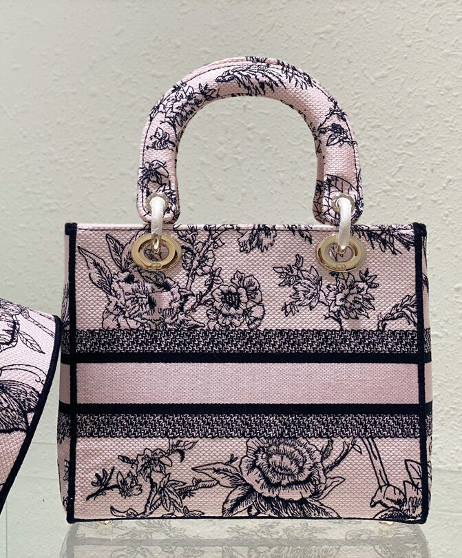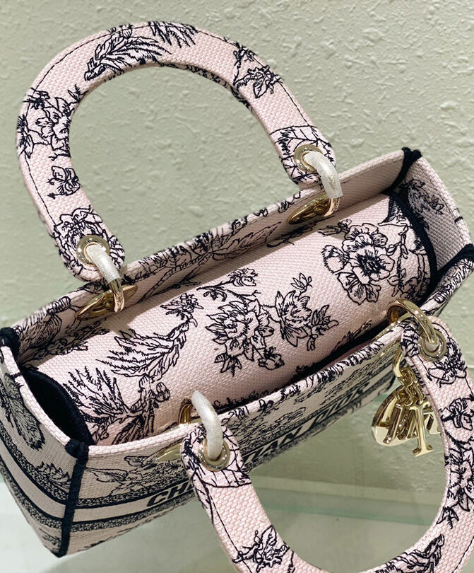 Christian Dior Medium Lady D-lite Embroidered Cannage Bag Pink