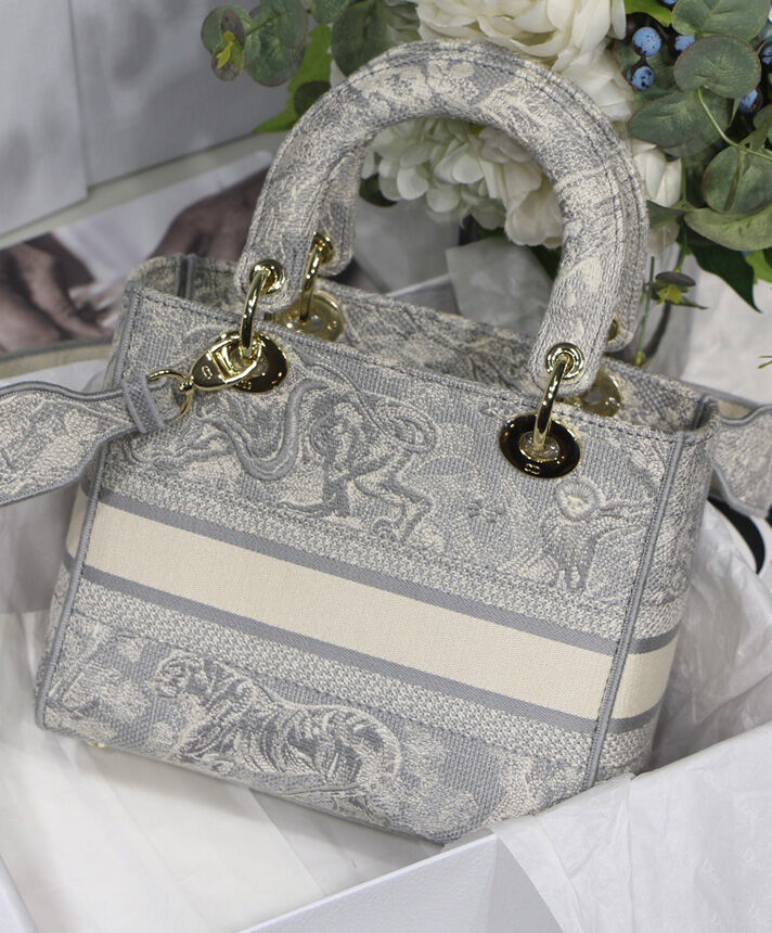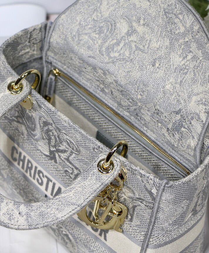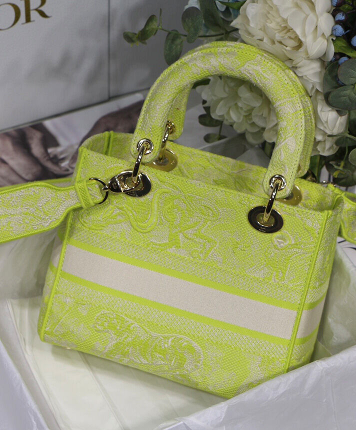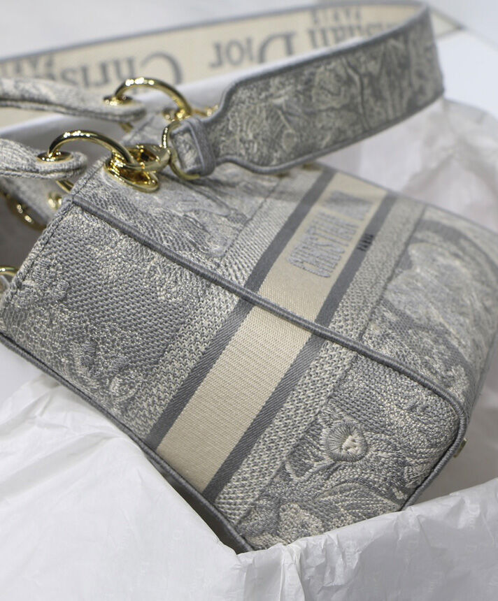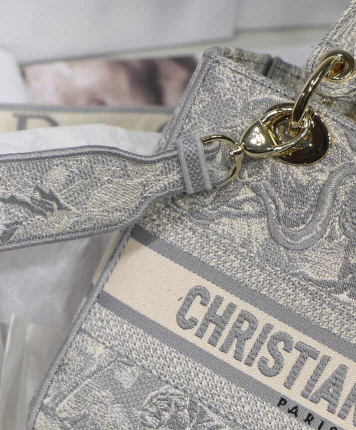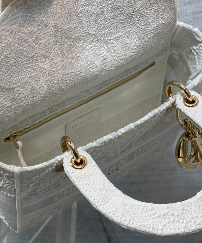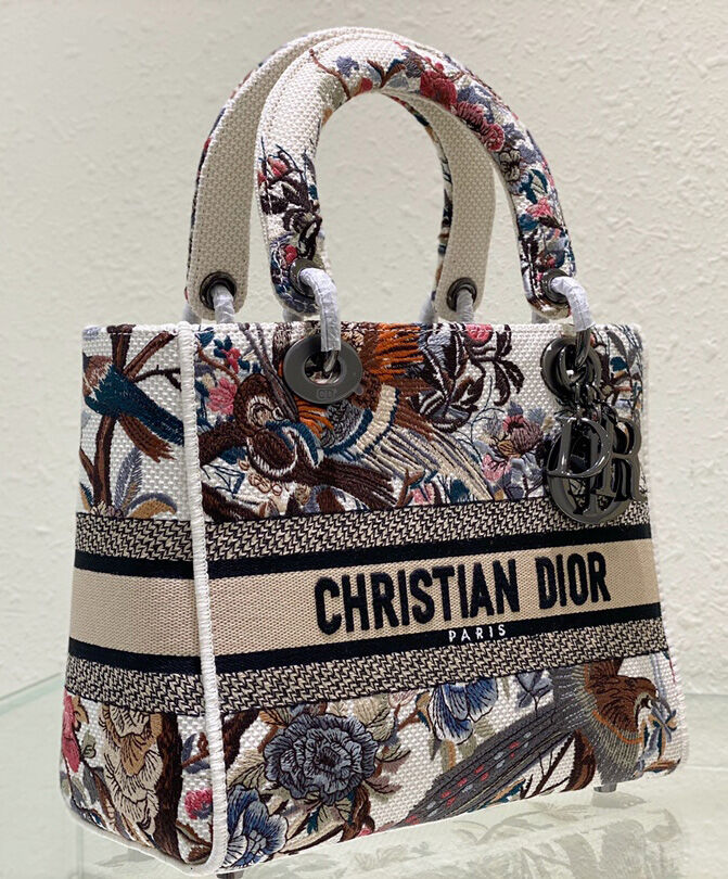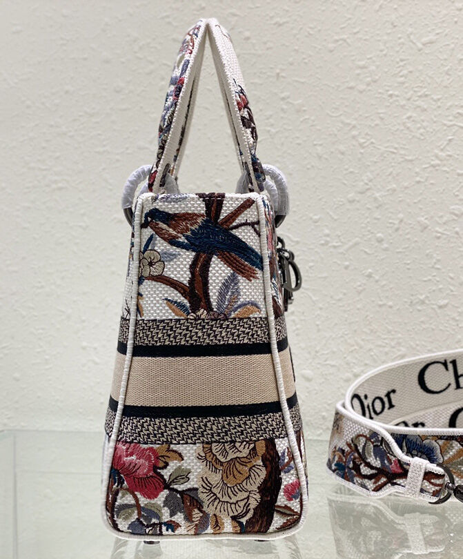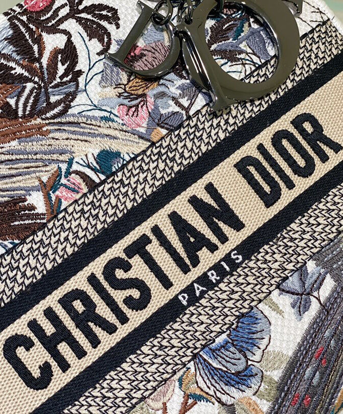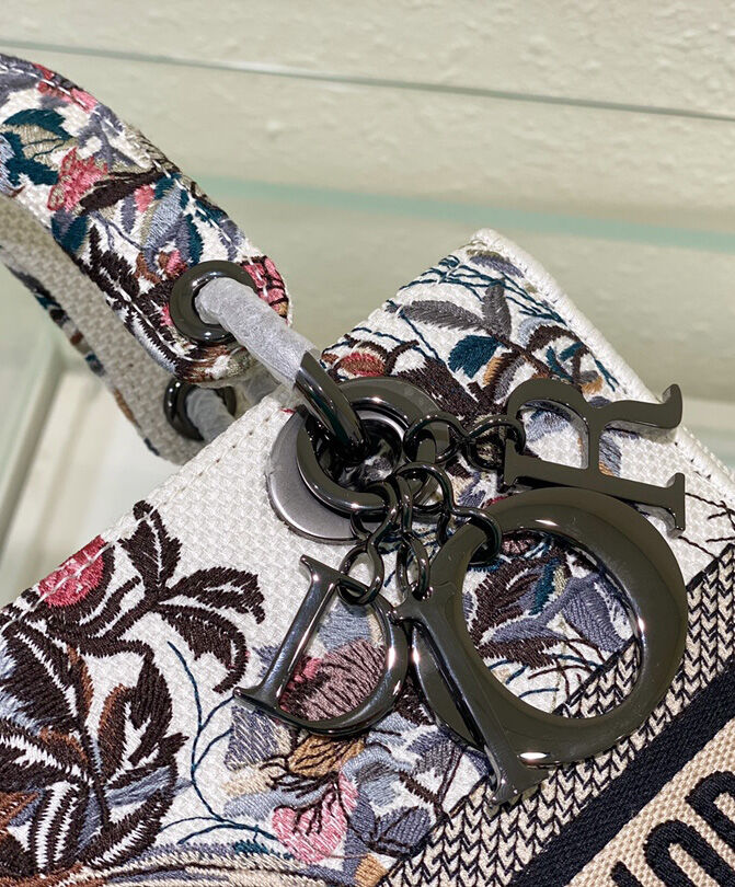 Christian Dior Medium Lady D-lite Embroidered Cannage Bag Black