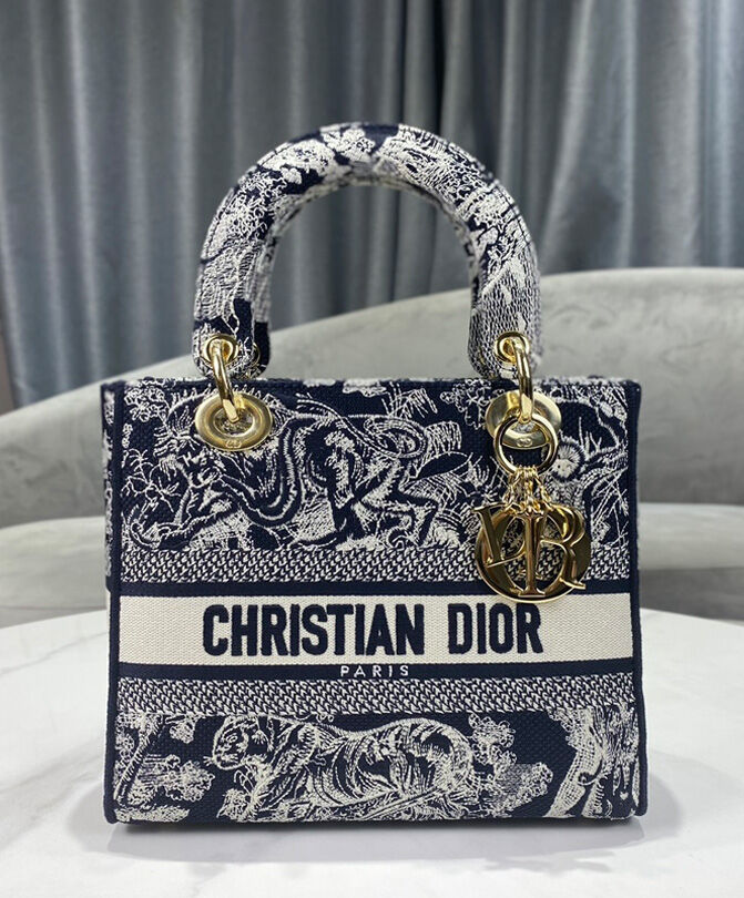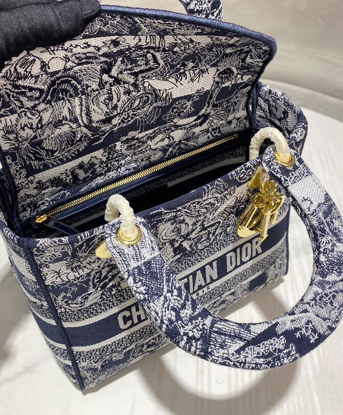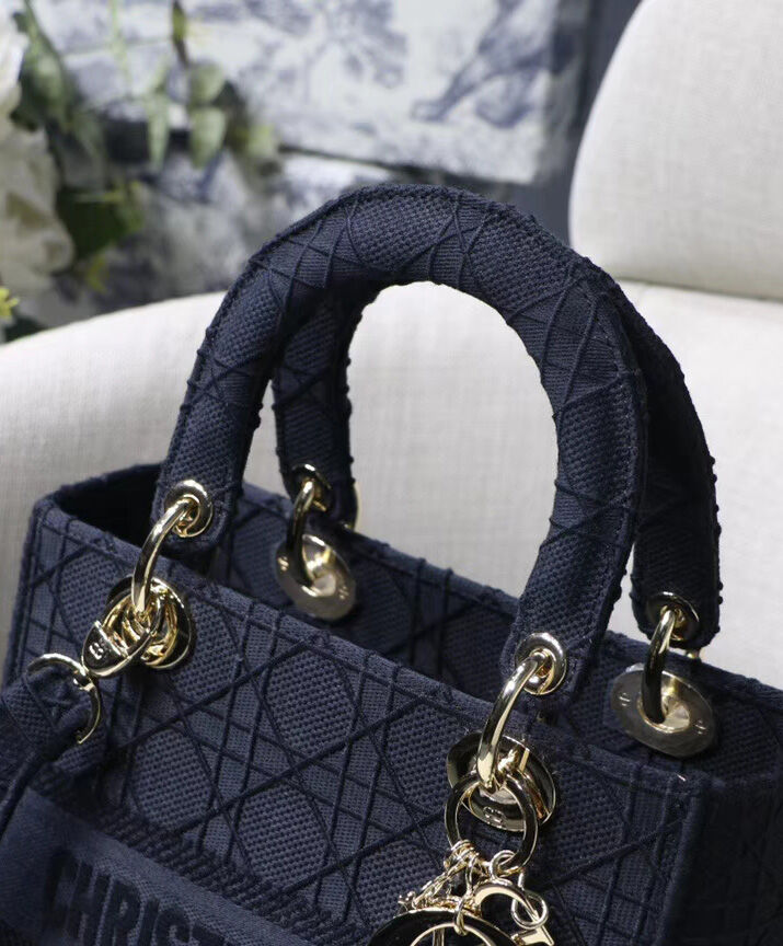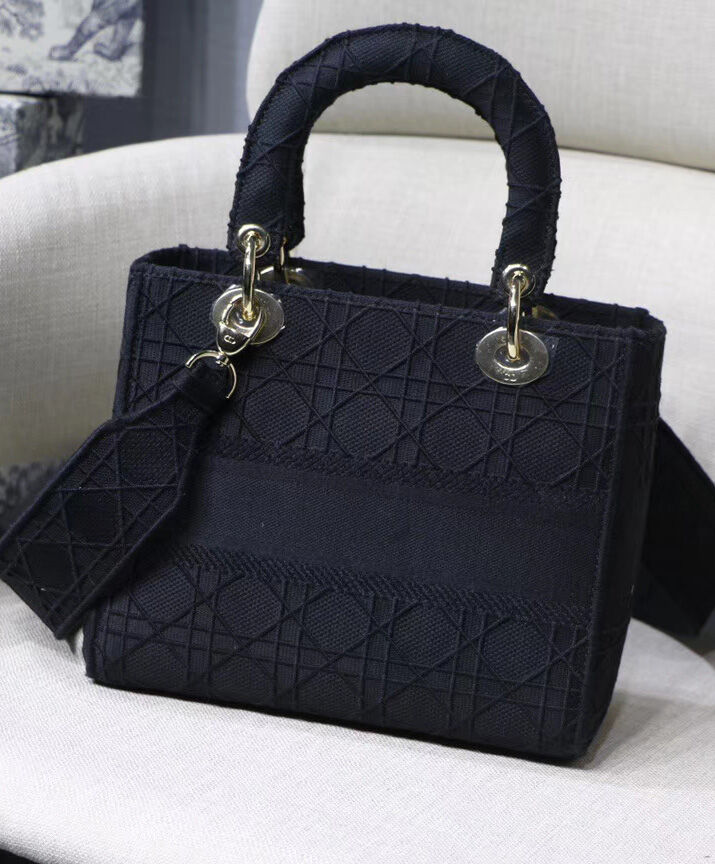 Christian Dior Medium Lady D-Lite Bag Dark Blue