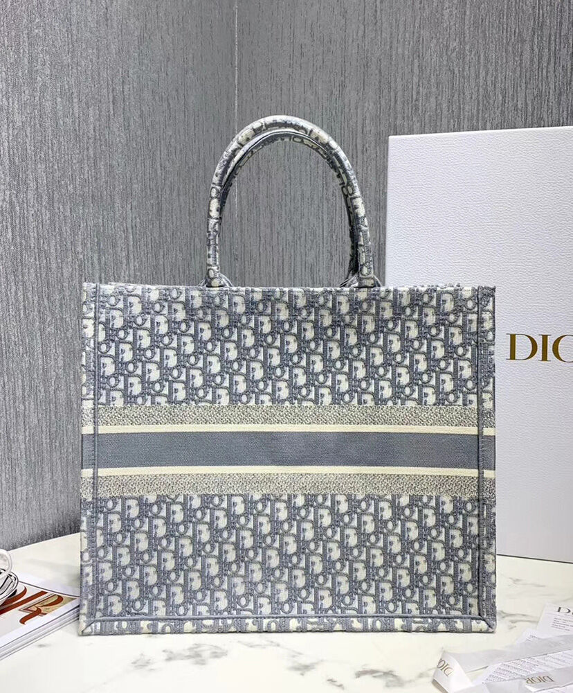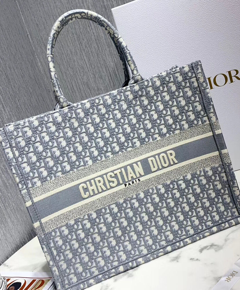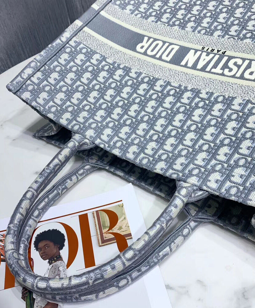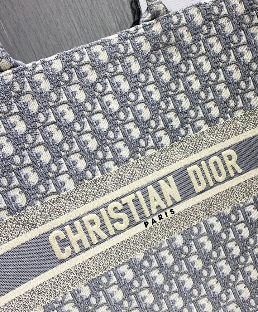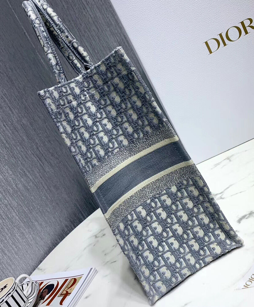 Christian Dior Book Tote With Dior Oblique Embroidery Gray