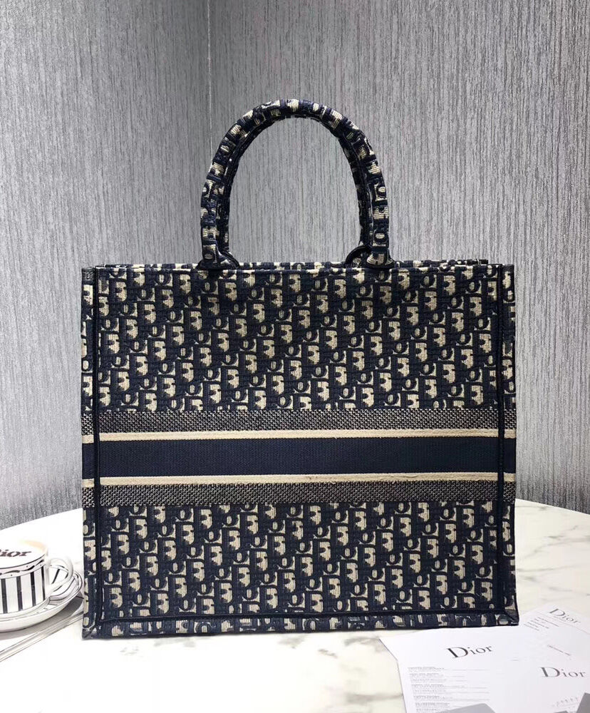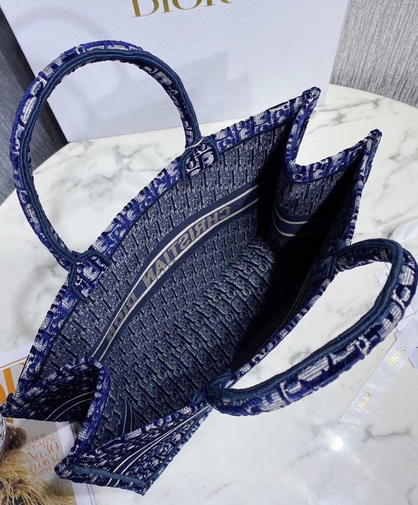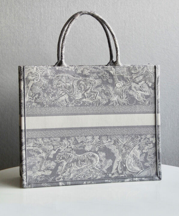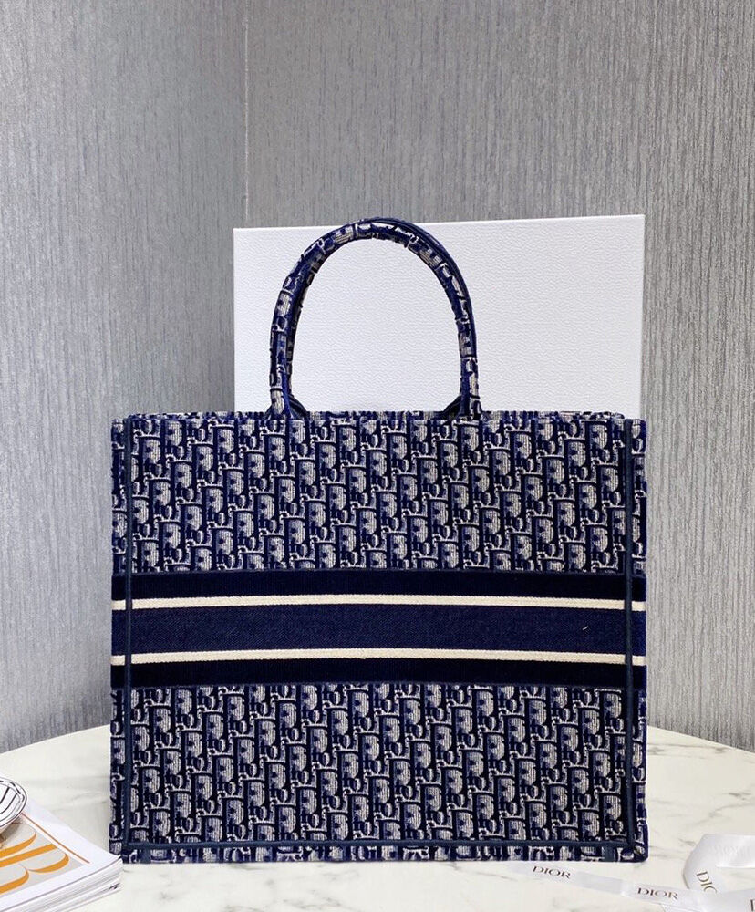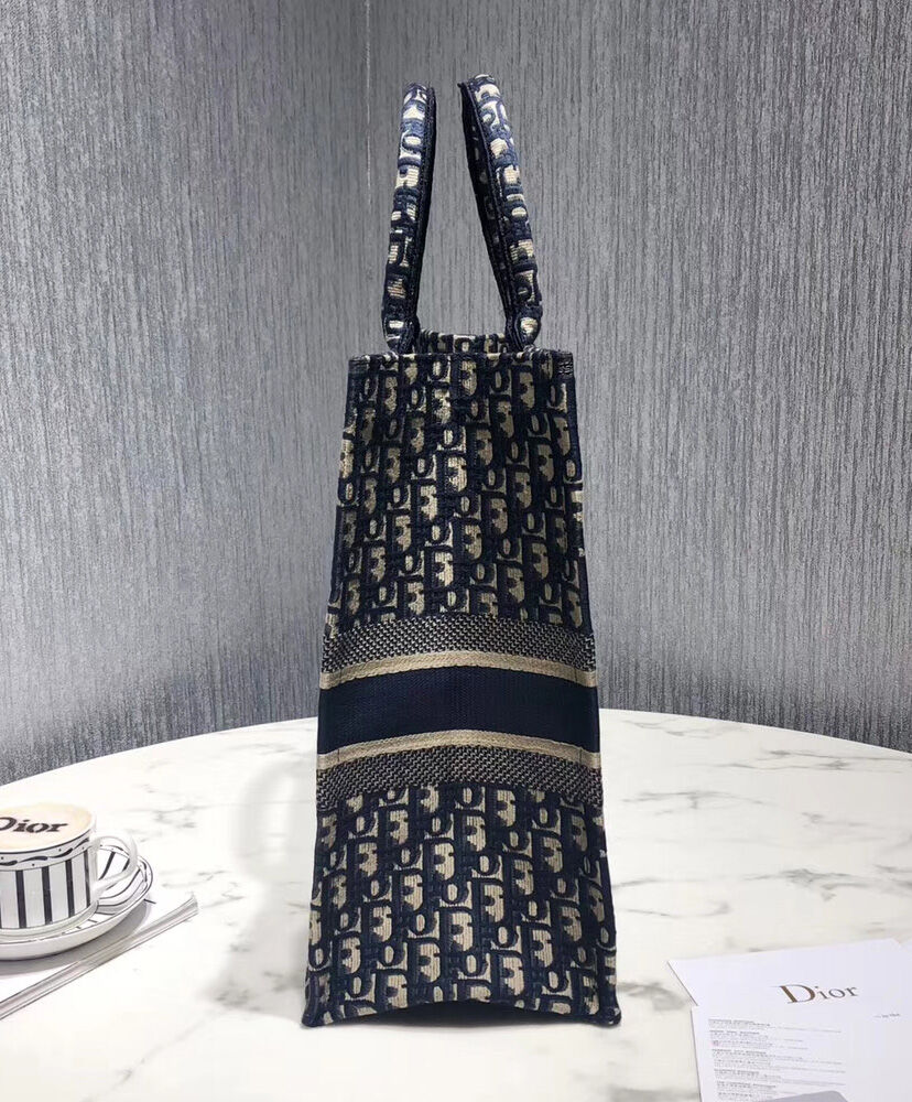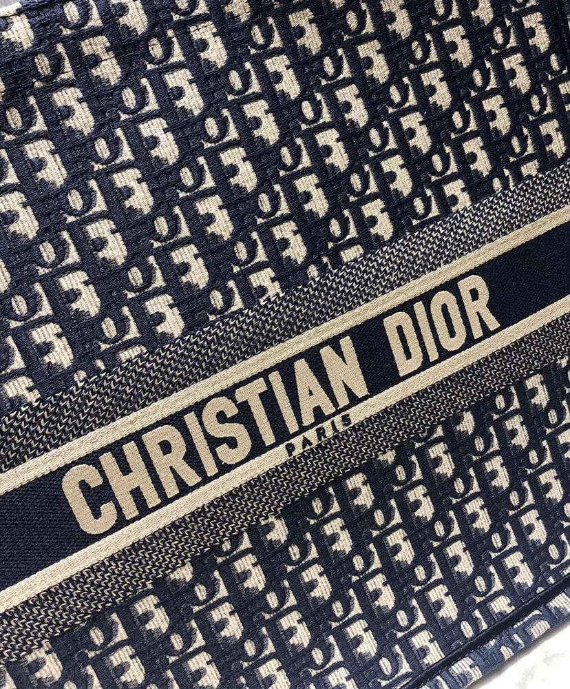 Christian Dior Book Tote With Dior Oblique Embroidery Gray