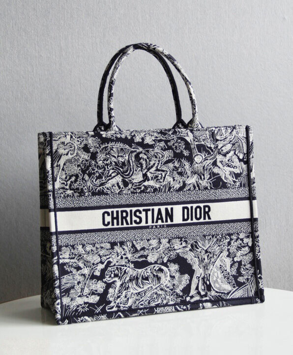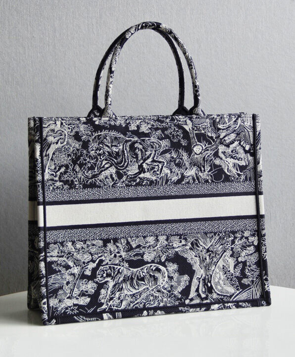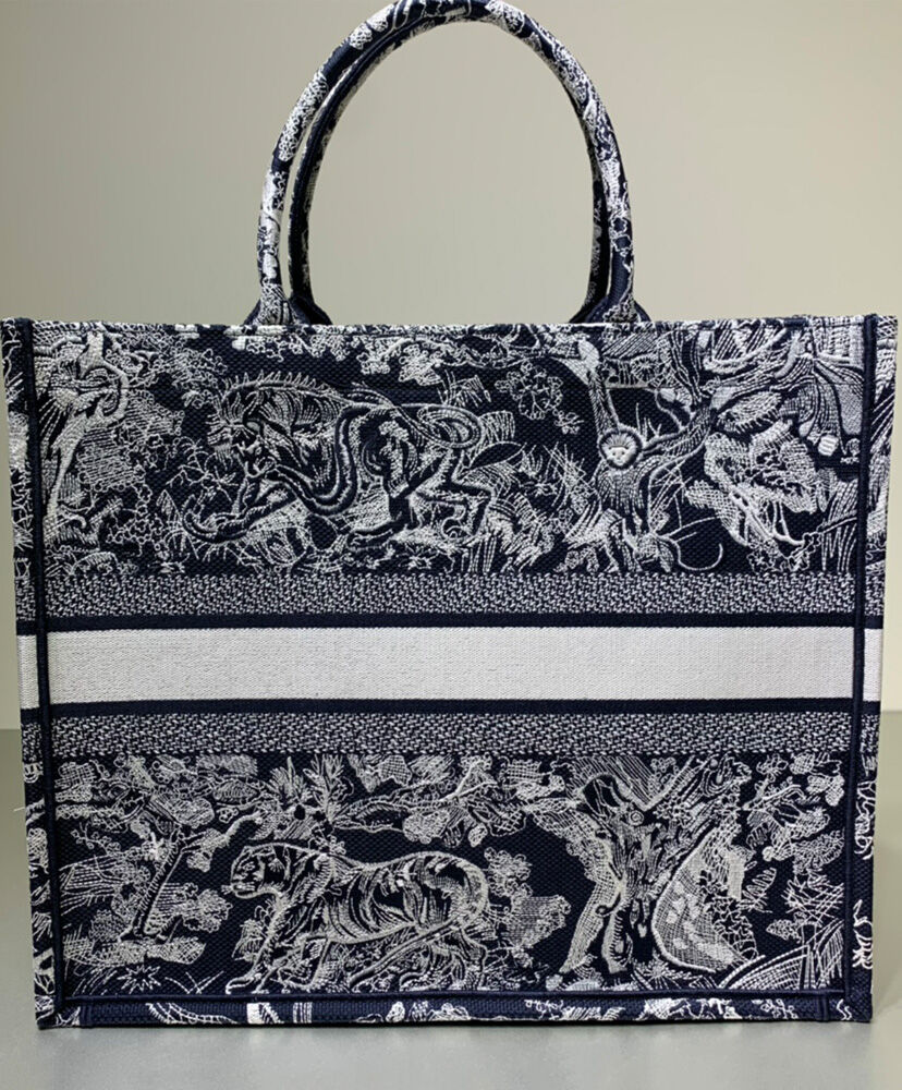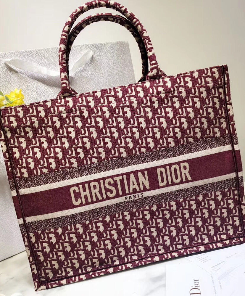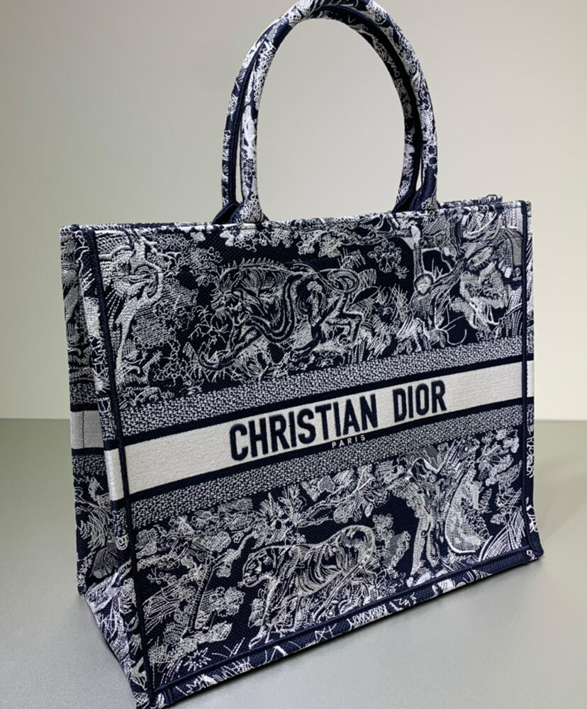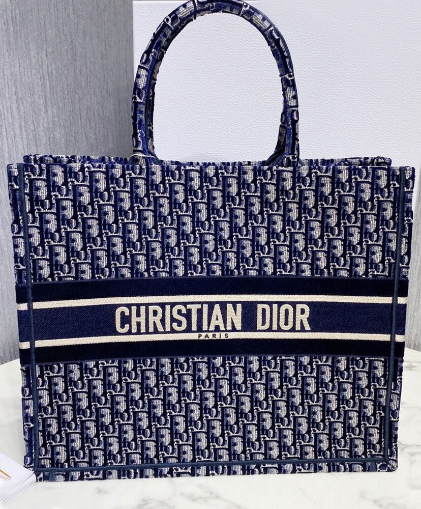 Christian Dior Book Tote With Dior Oblique Embroidery Gray
