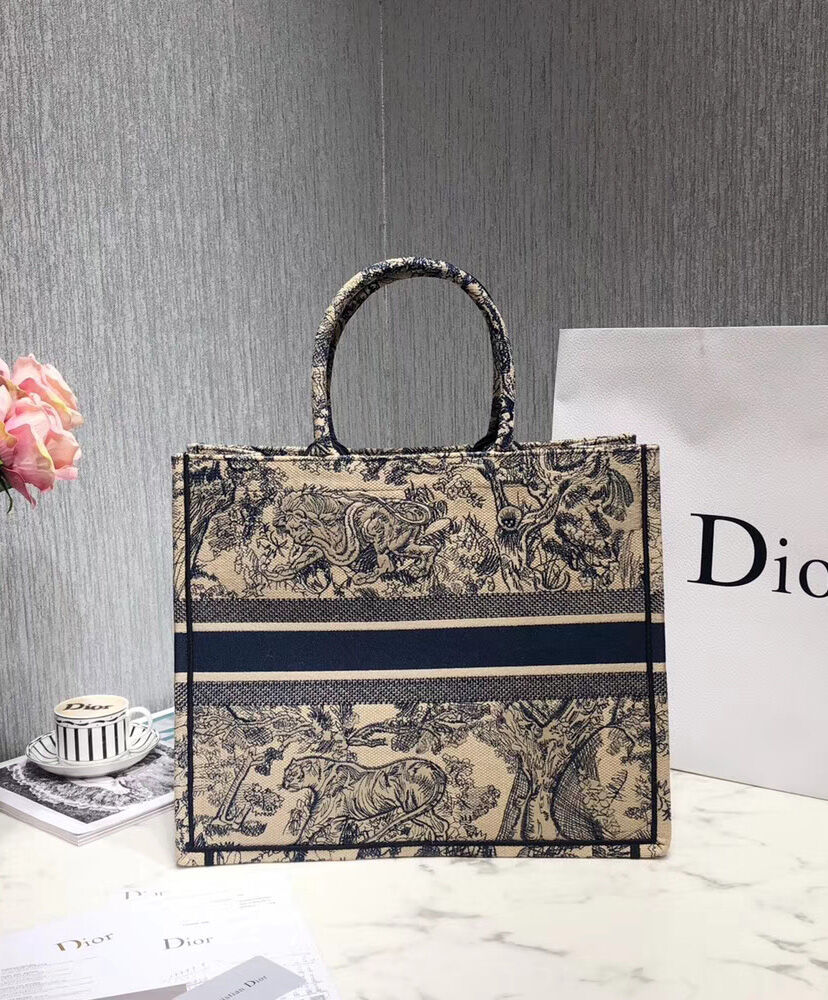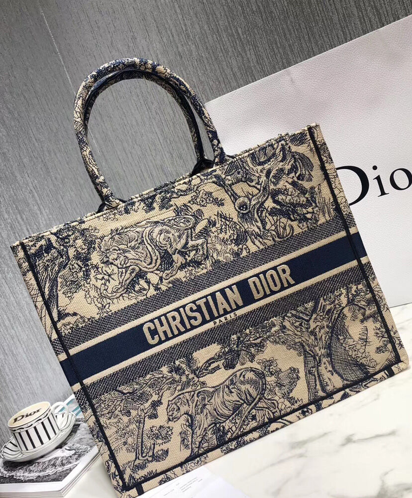 Christian Dior Book Tote Toile de Jouy Bag Blue