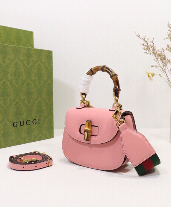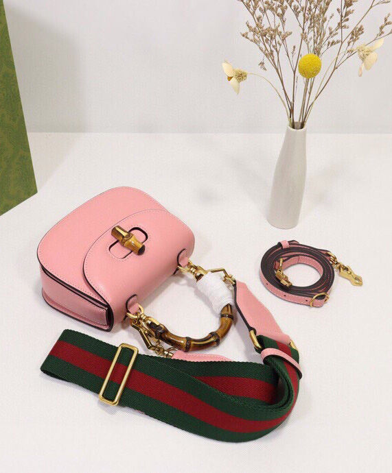 Gucci Mini Top Handle Bag With Bamboo 686864 Pink