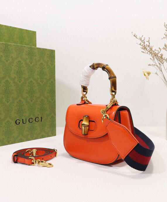 Gucci Mini Top Handle Bag With Bamboo 686864 Orange
