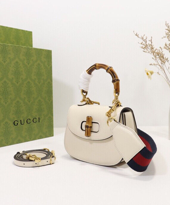 Gucci Mini Top Handle Bag With Bamboo 686864 Cream