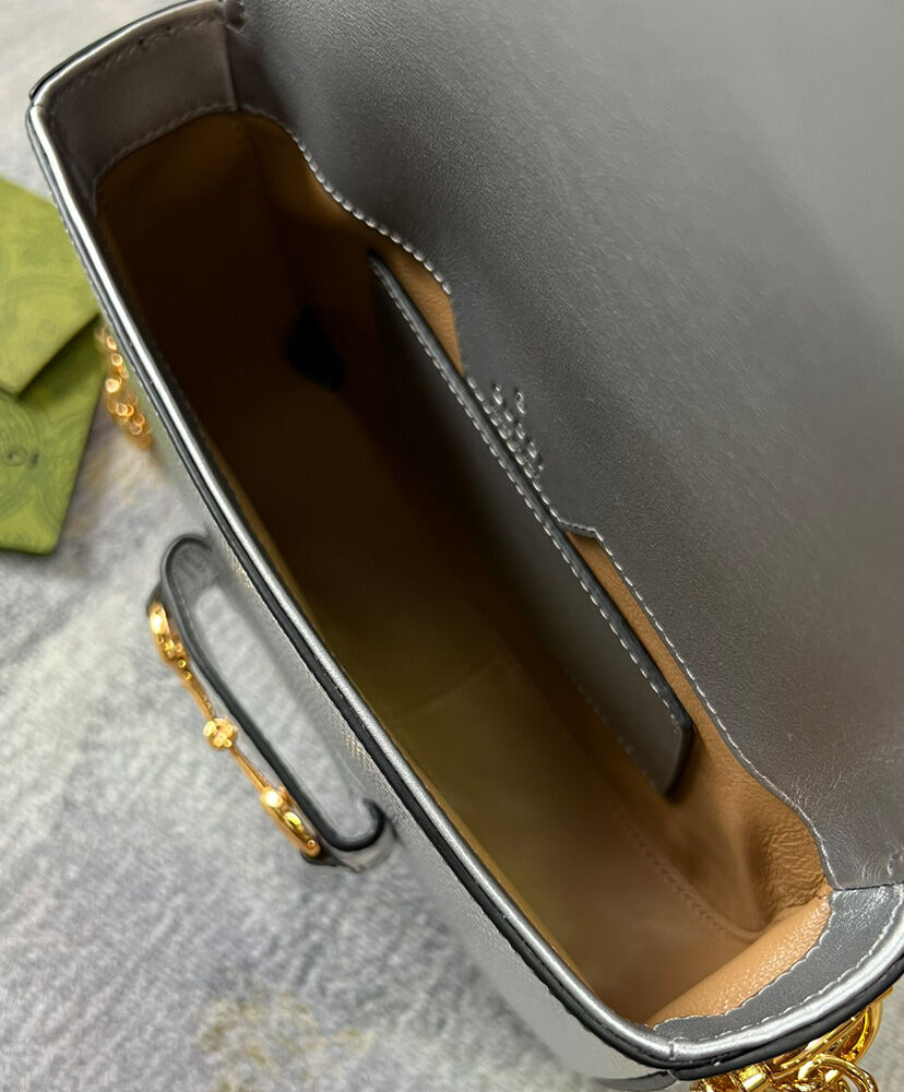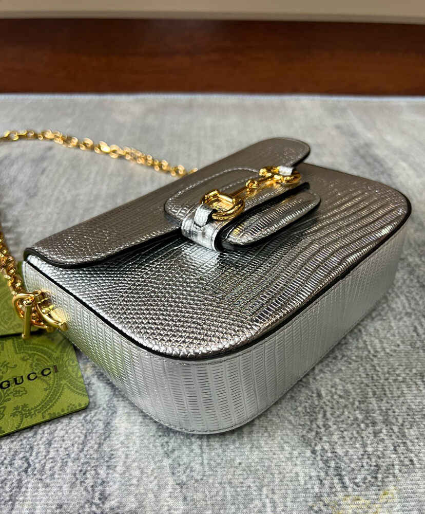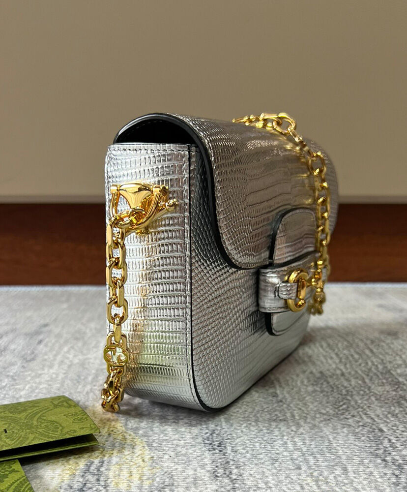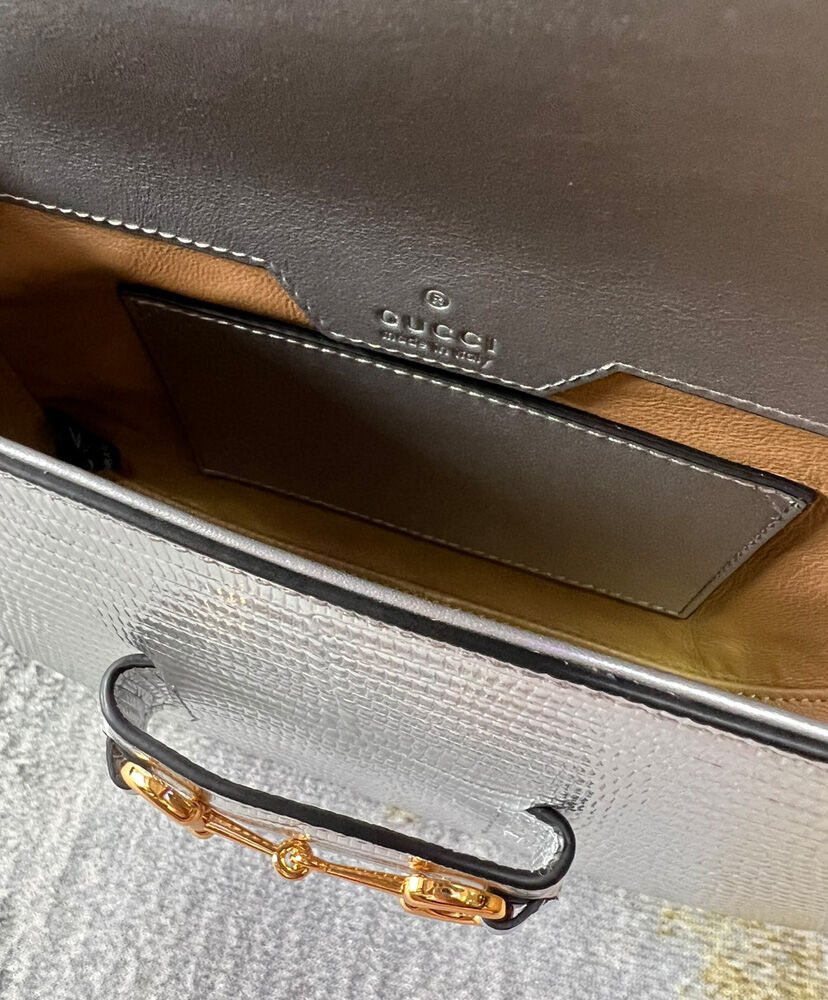 Gucci Horsebit 1955 Lizard Mini Bag 675801 Silver