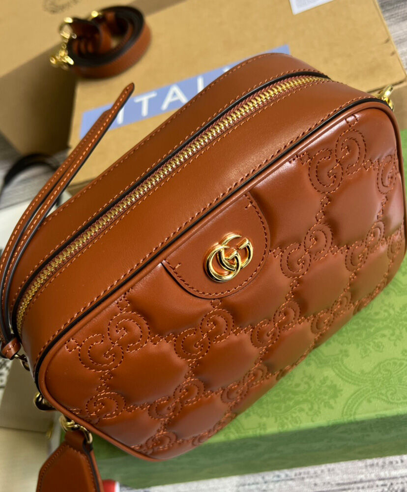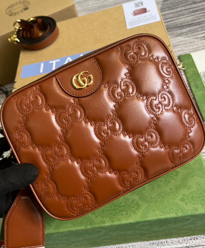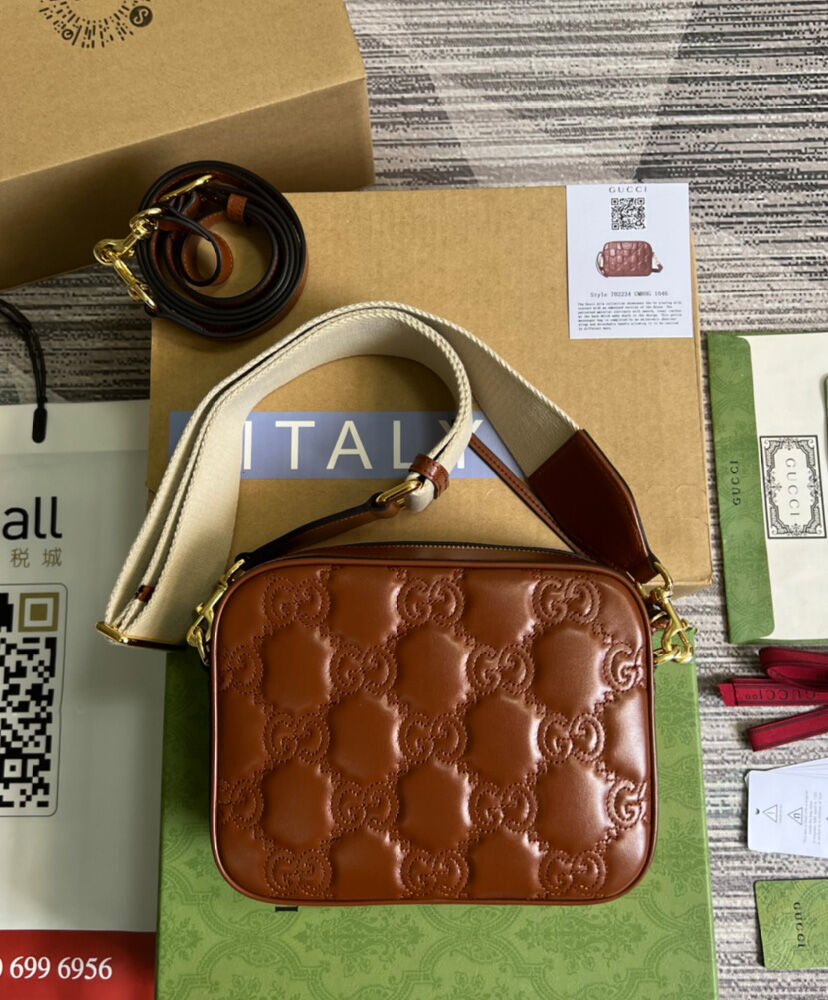 Gucci GG Matelasse Leather Shoulder Bag 702234 Coffee