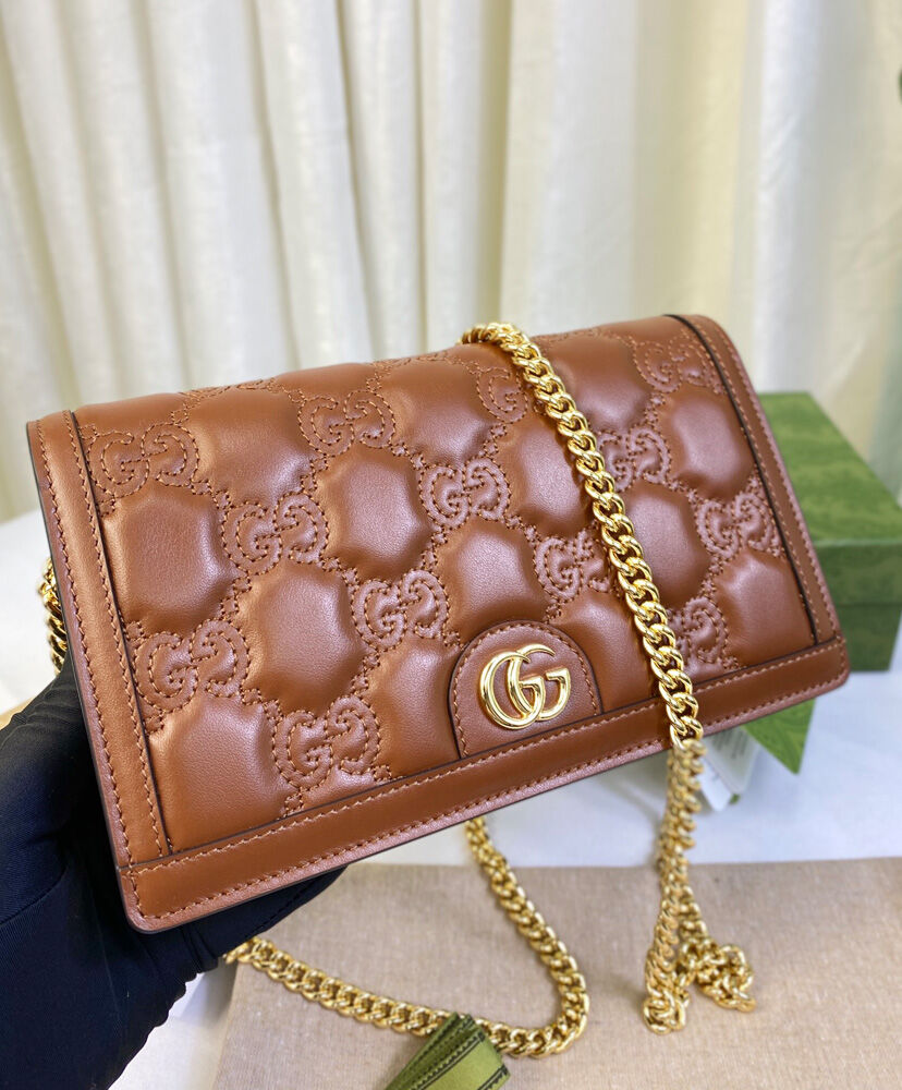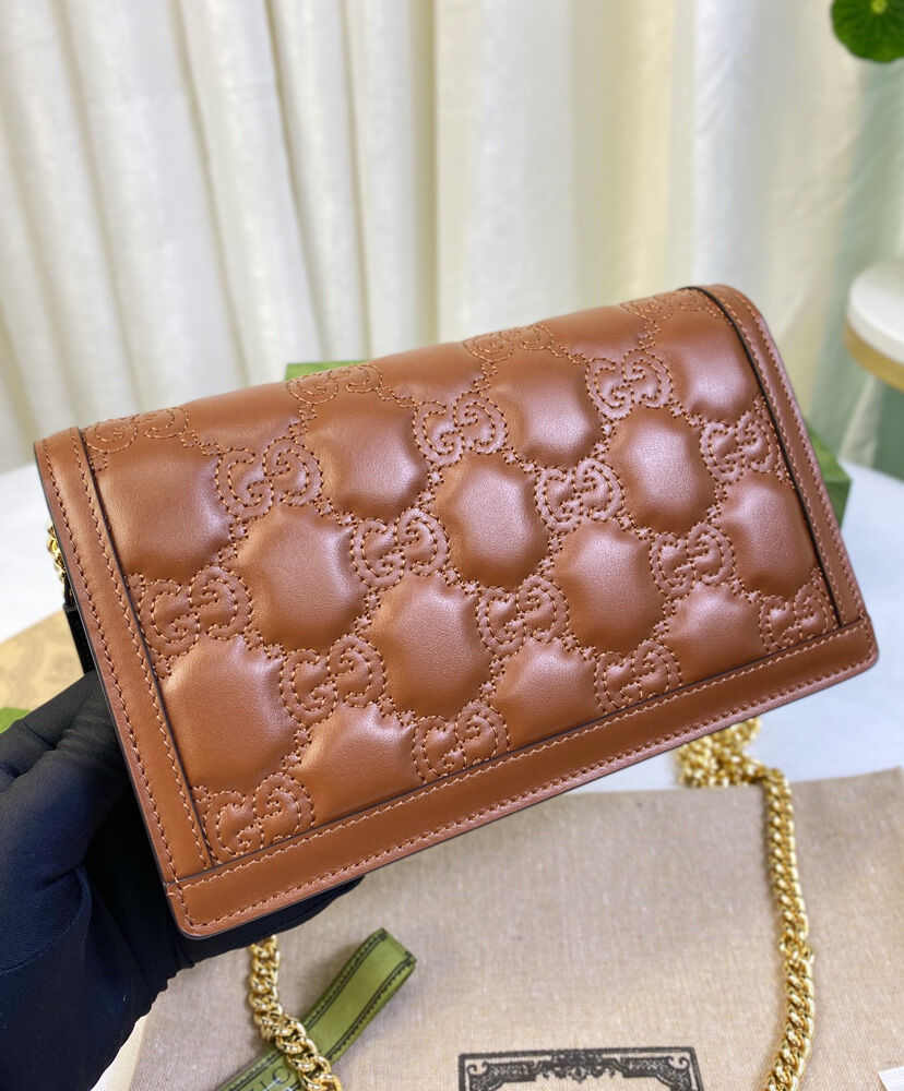 Gucci GG Matelasse Chain Wallet 723787 Coffee