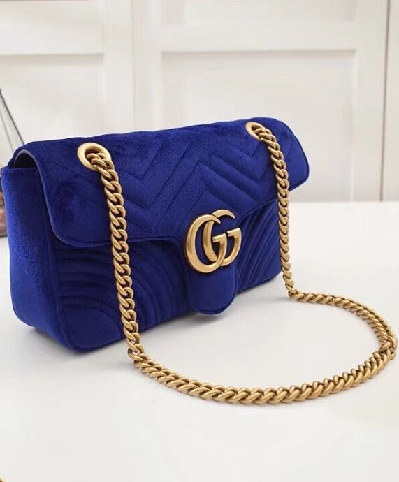 Gucci GG Marmont Velvet Shoulder Bag 443497 Blue
