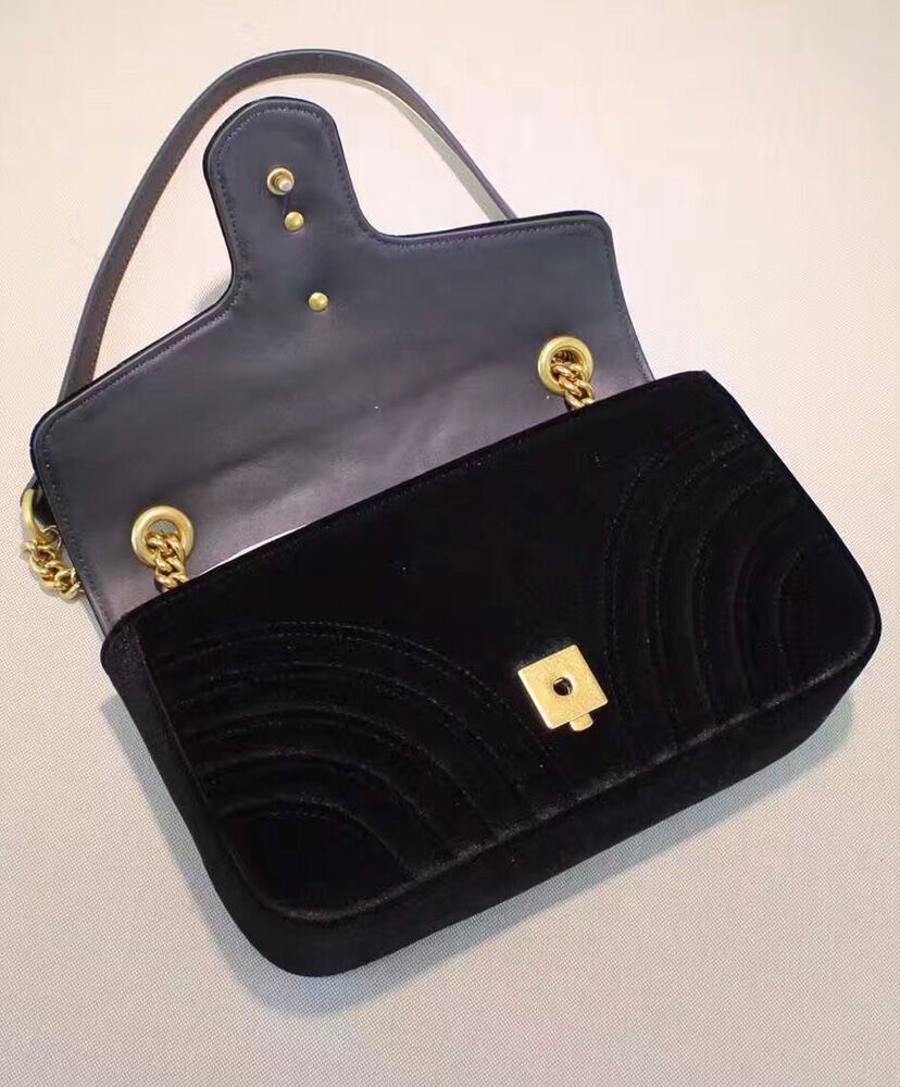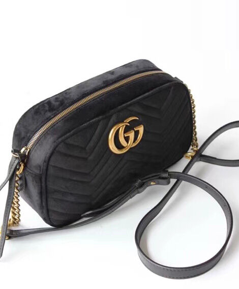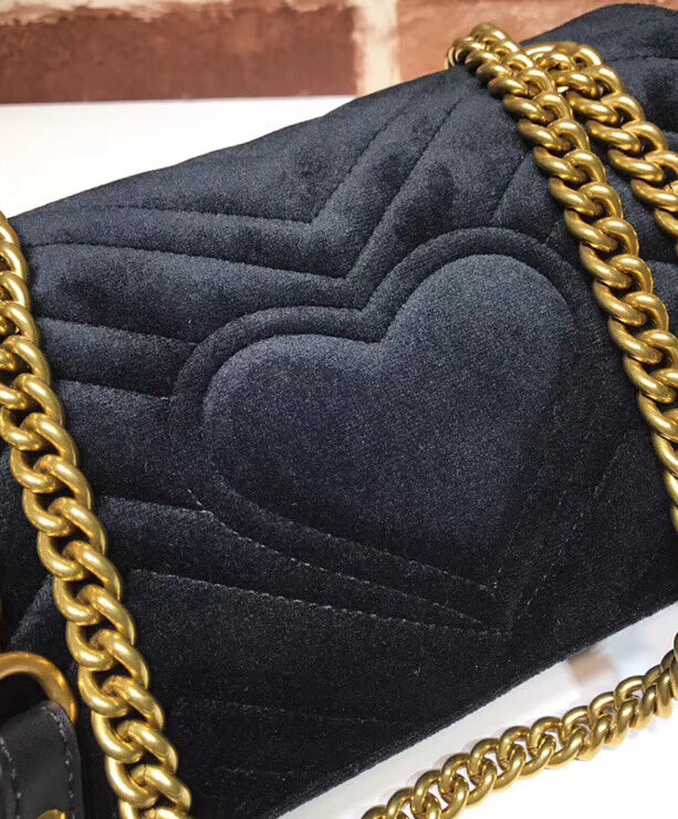 Gucci GG Marmont velvet small shoulder bag 447632 Black