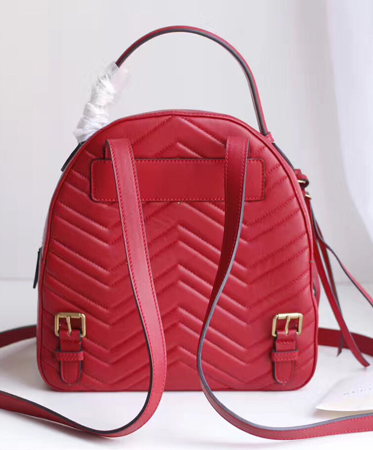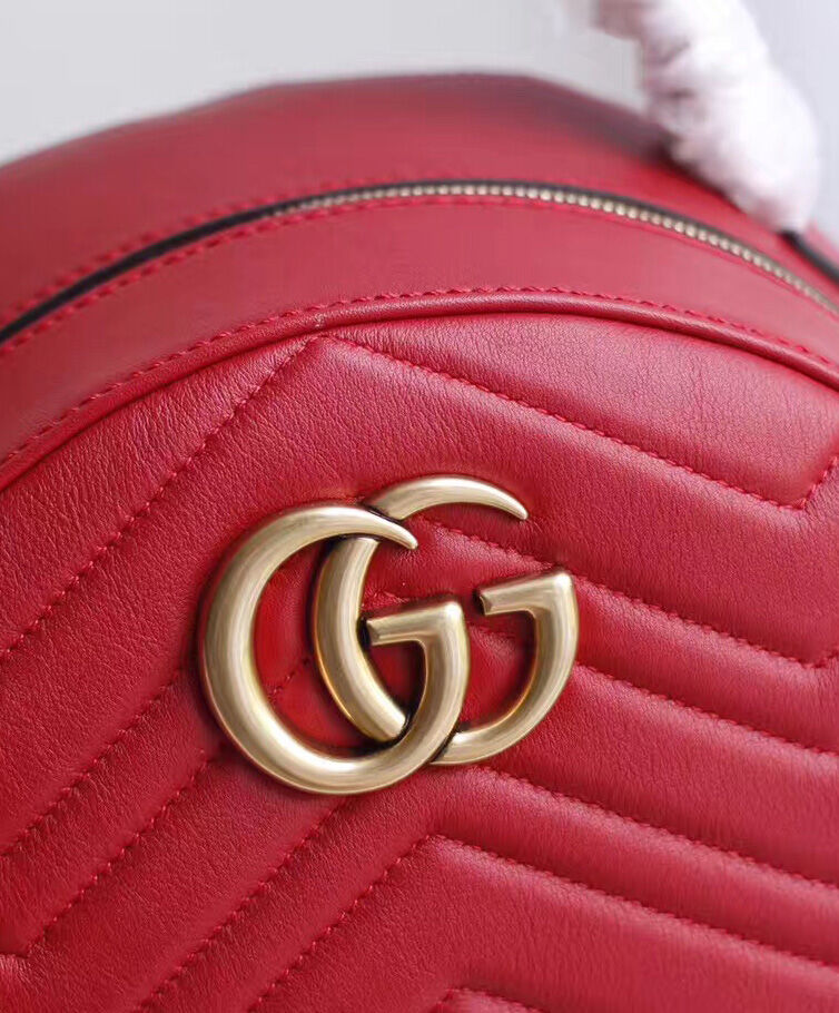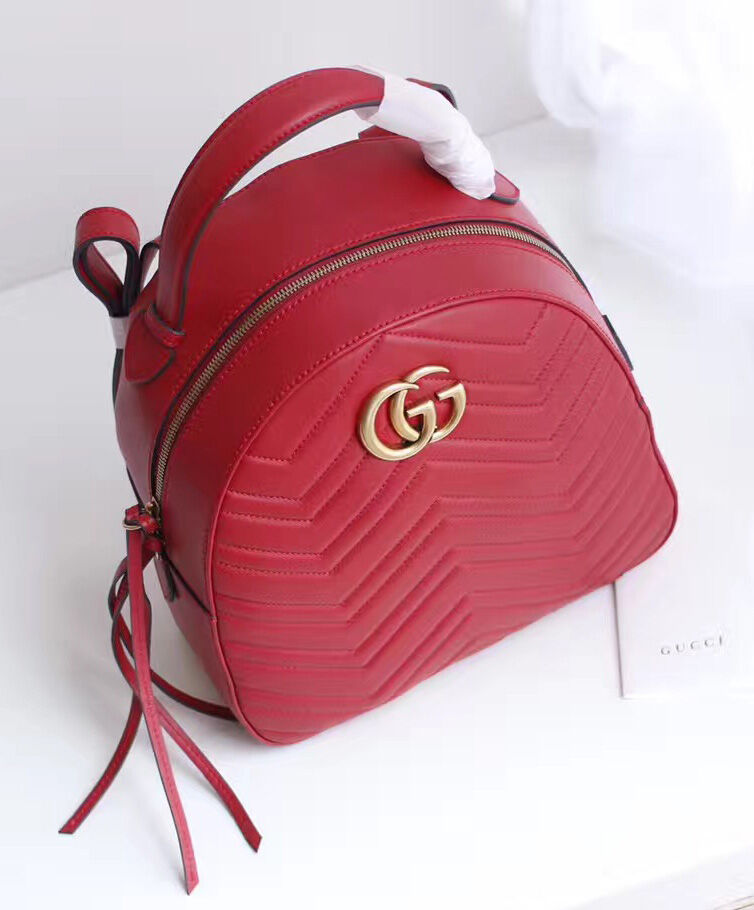 Gucci GG Marmont Quilted Leather Backpack Bag 476671 Red