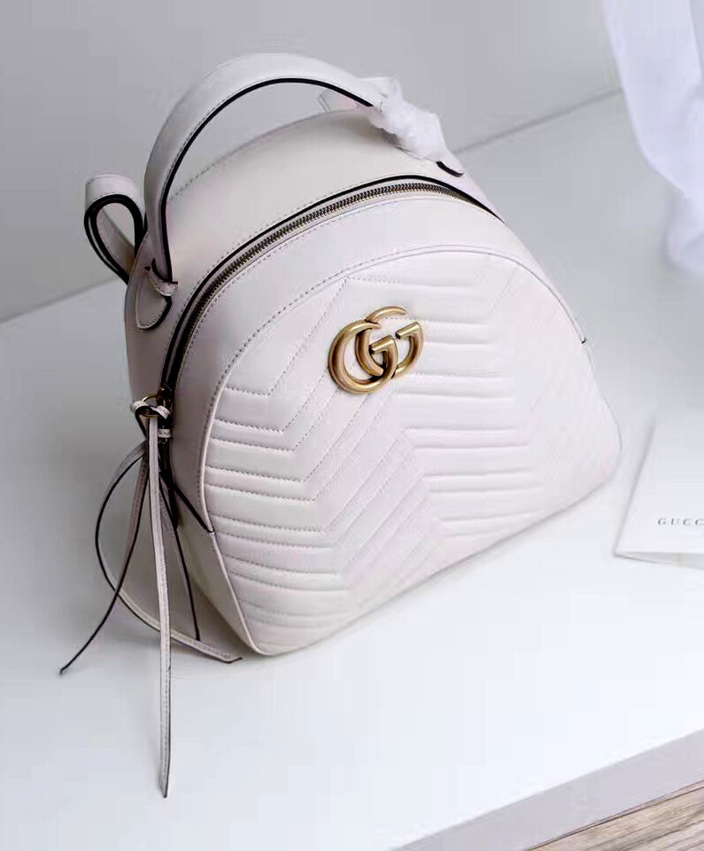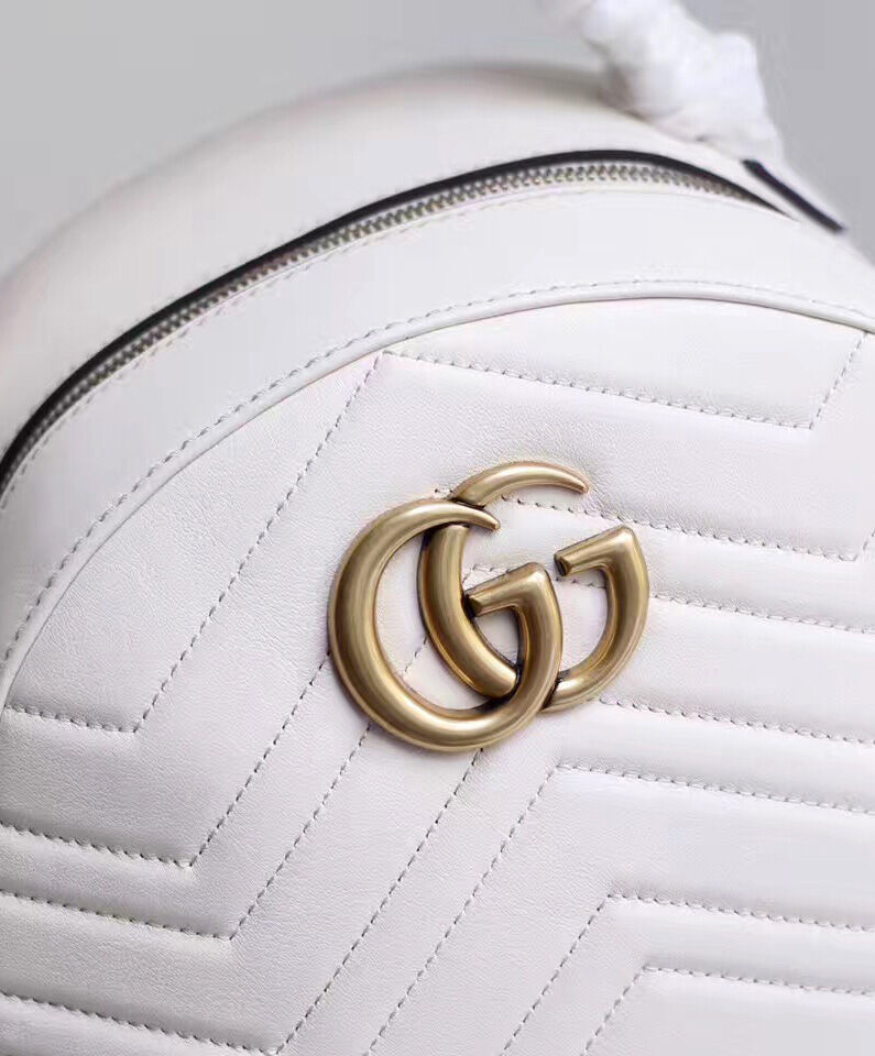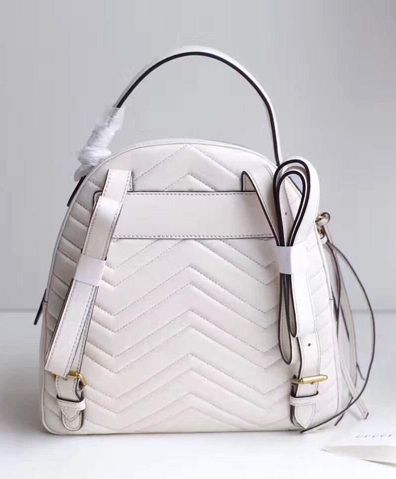 Gucci GG Marmont Quilted Leather Backpack Bag 476671 White