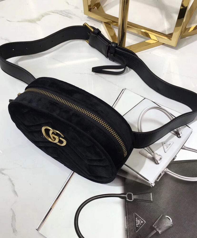 Gucci GG Marmont matelasse velvet belt bag 476434 Black