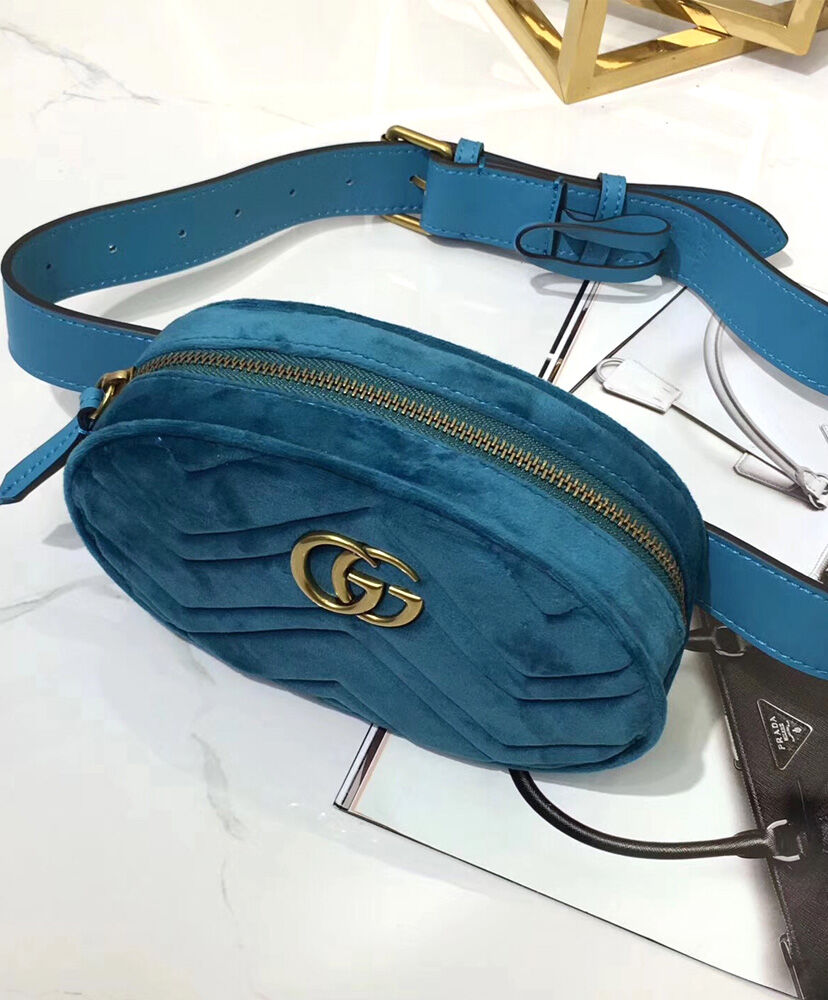 Gucci GG Marmont matelasse velvet belt bag 476434 Blue