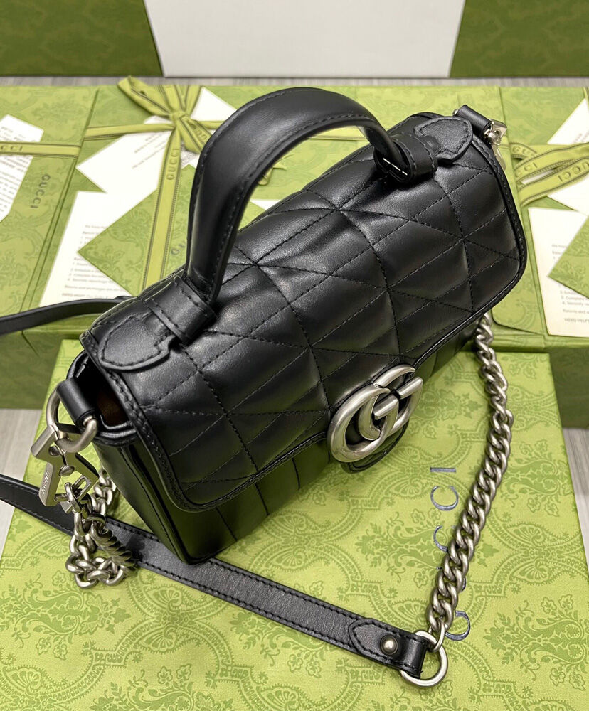 Gucci GG Marmont matelasse top handle bag 498100 Black