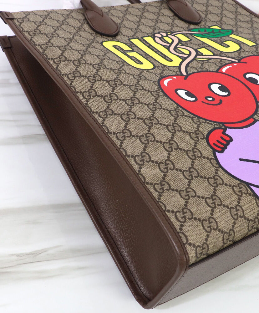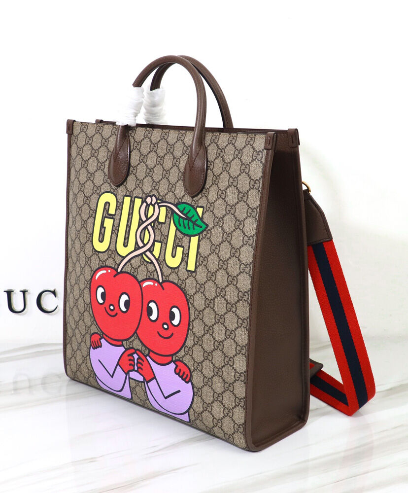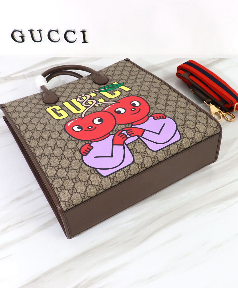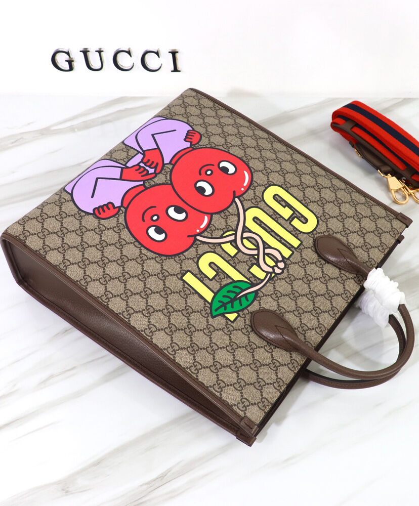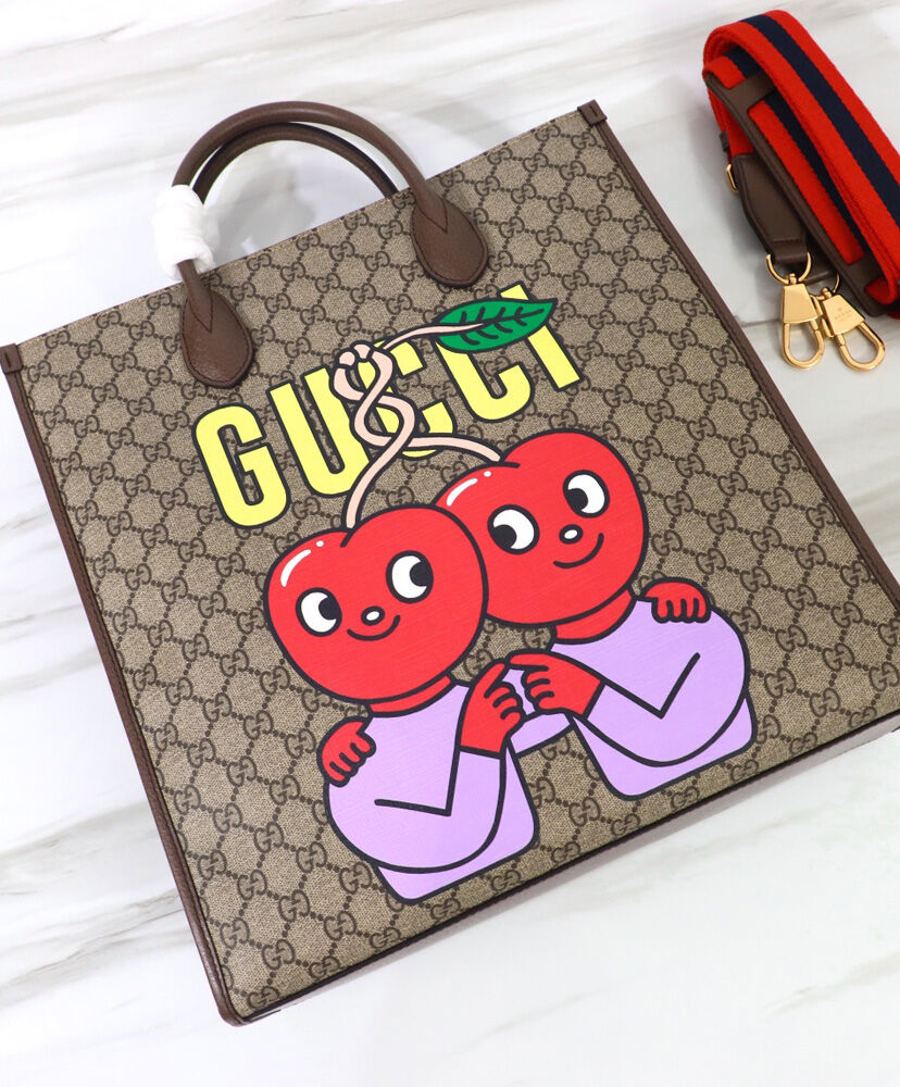 Gucci Cherry Print Medium Tote 703264 Dark Coffee
