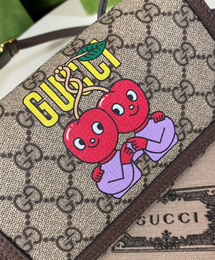 Gucci Cherry Print Mini Bag 700733 Dark Coffee