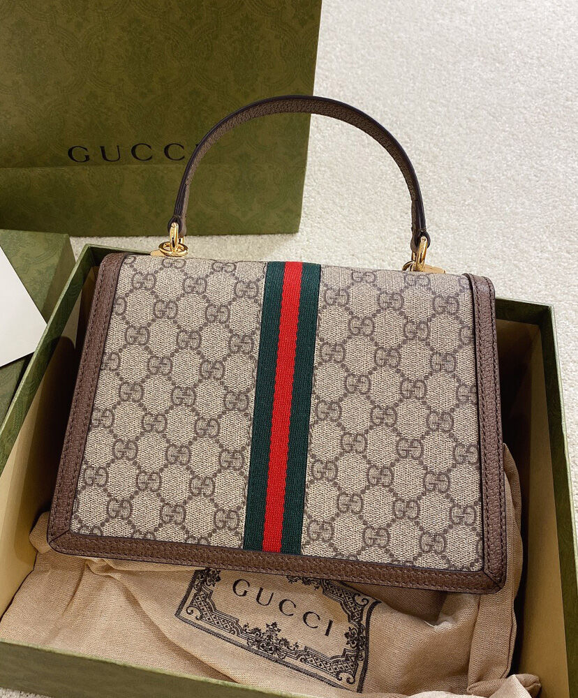 Gucci Ophidia Small Top Handle Bag With Web 651055 Dark Coffee