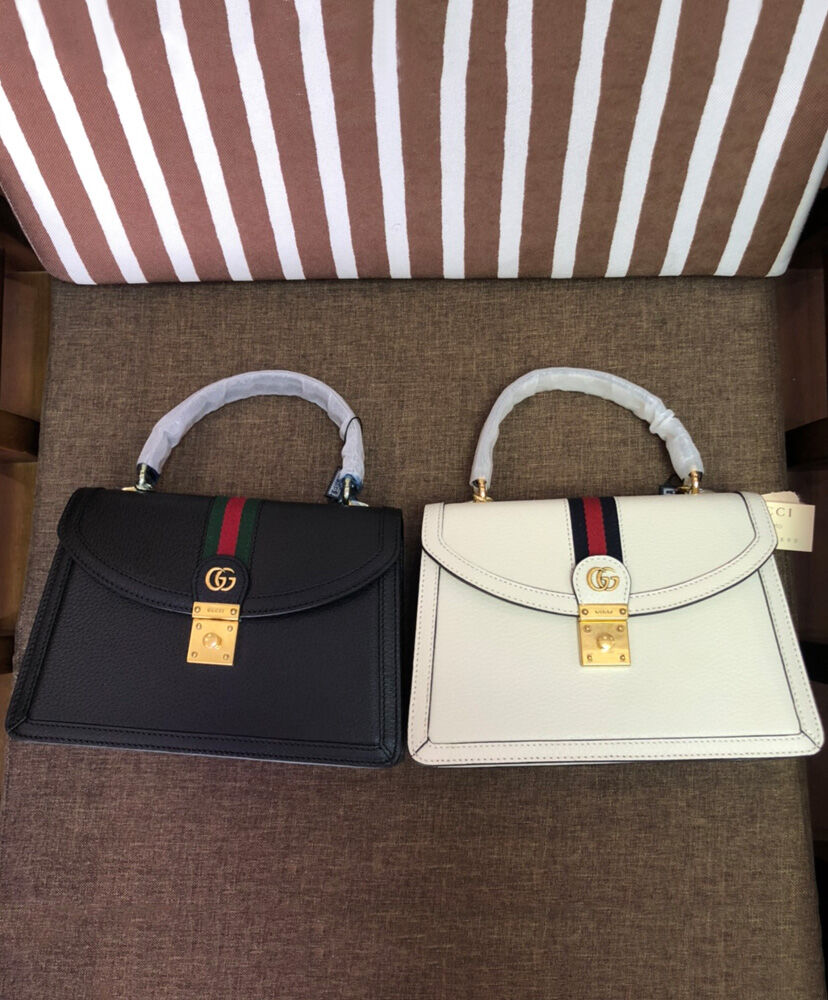 Gucci Ophidia Small Top Handle Bag With Web 652683 White