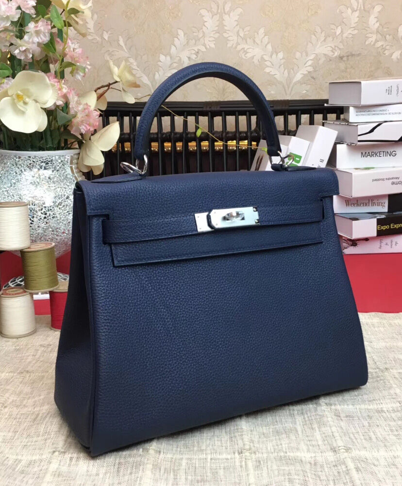 Hermes Kelly Bag 25 Togo Leather Dark Blue