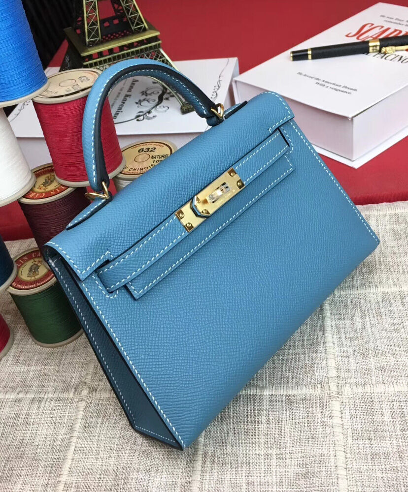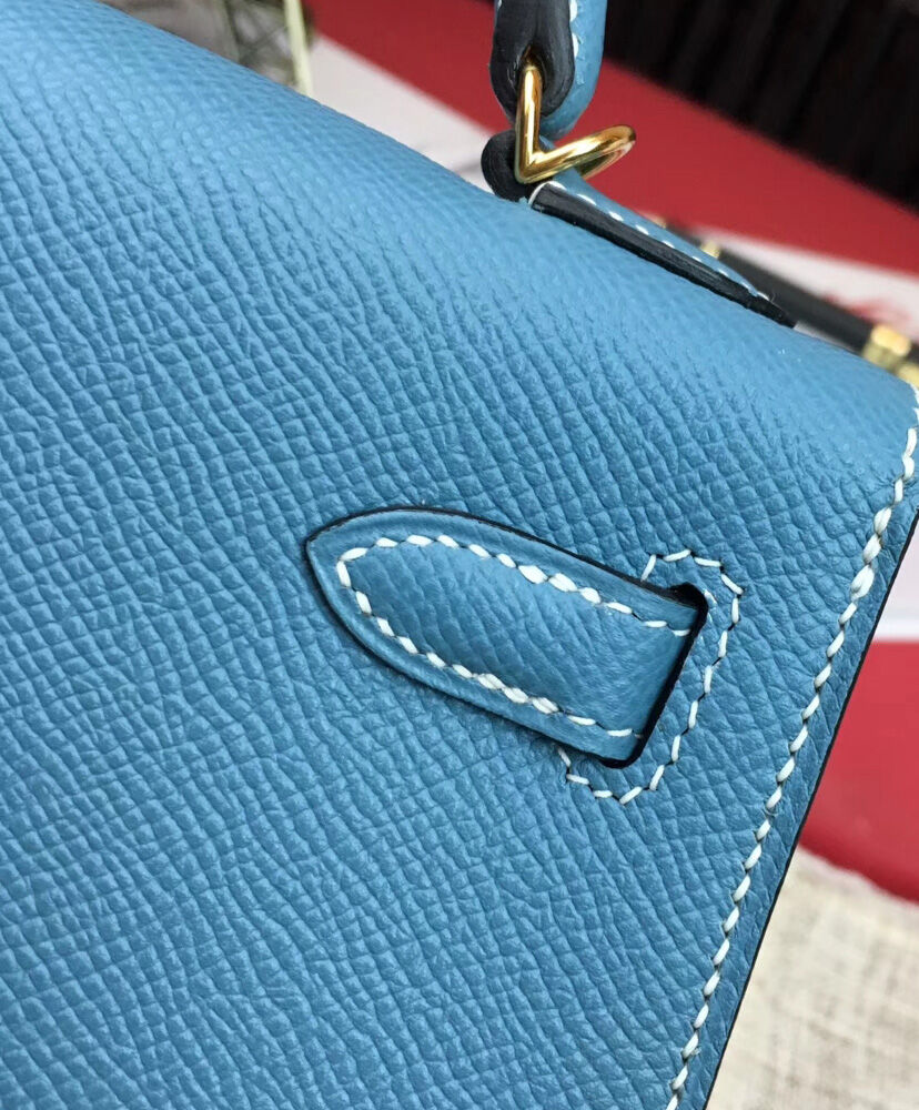 Hermes Kelly Bag 19 Epsom Leather Blue