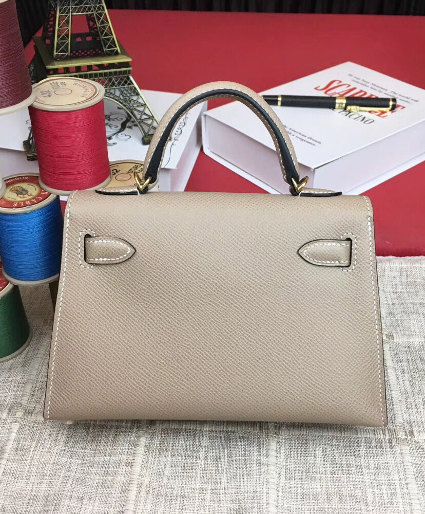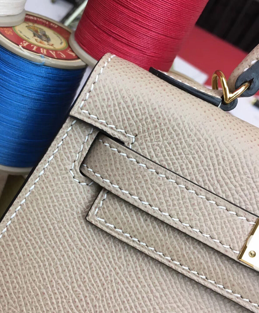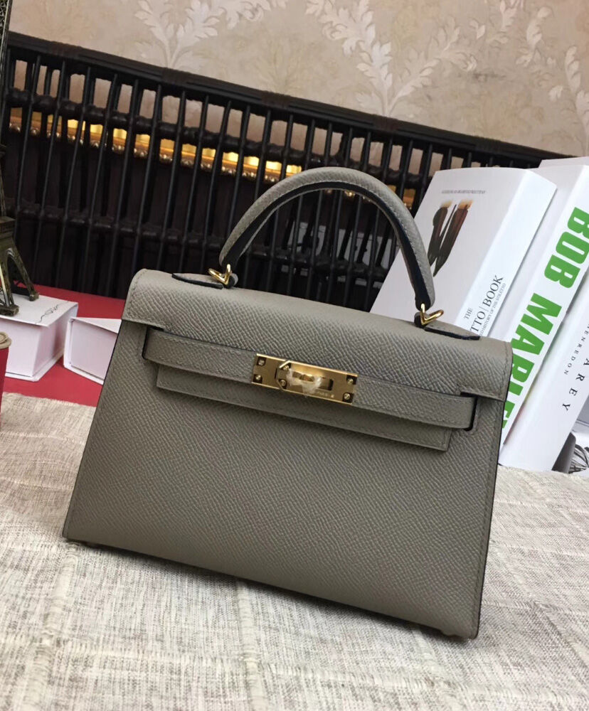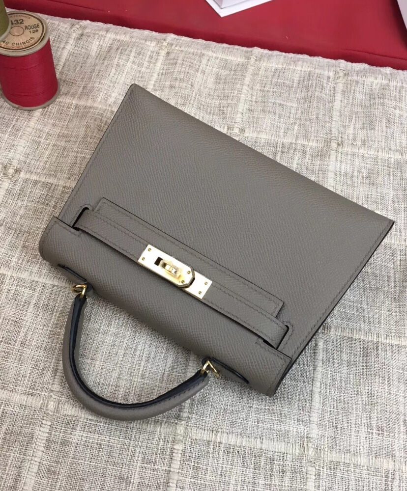 Hermes Kelly Bag 19 Epsom Leather Light Gray