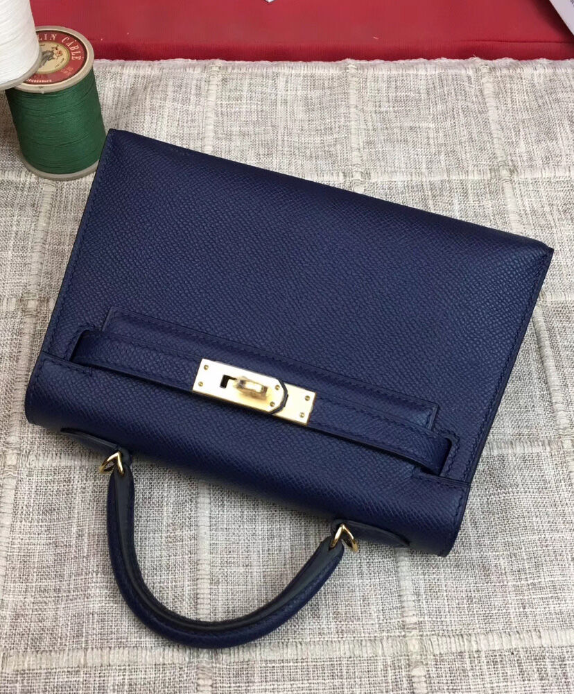 Hermes Kelly Bag 19 Epsom Leather Dark Blue