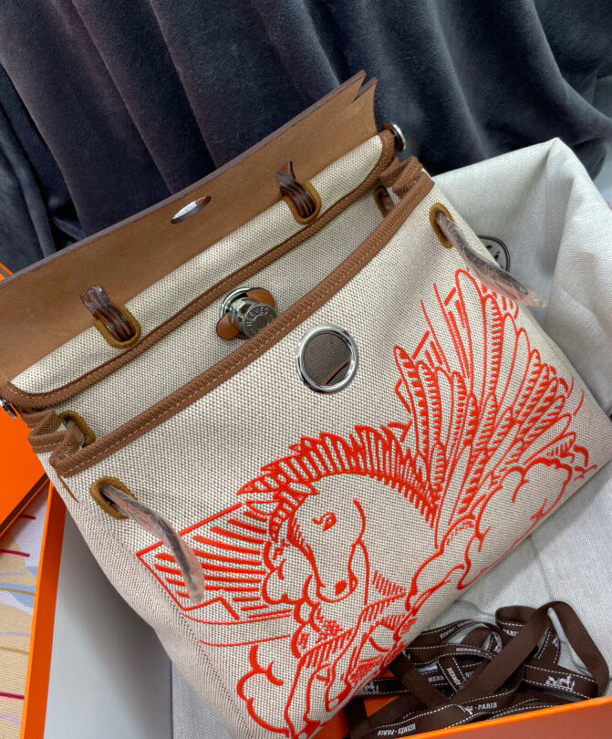 Hermes Herbag Zip Pegase Pop PM 31 Capucine Bag Coffee