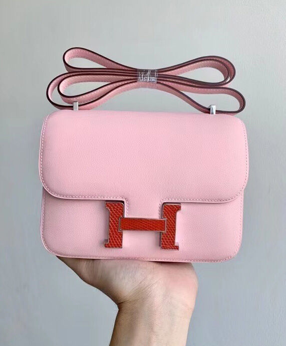 Hermes Constance 18 Mini Bag Swift Leather Lizard Buckle Pink
