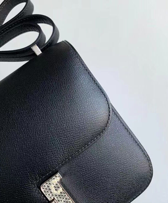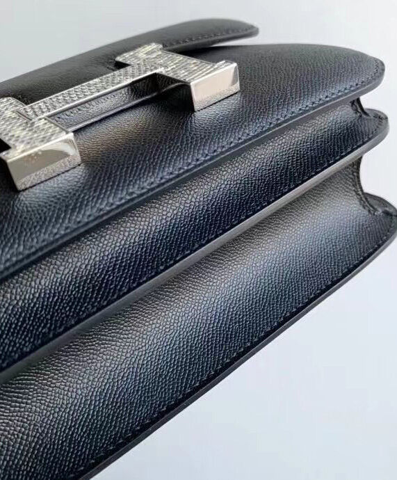 Hermes Constance 18 Mini Bag Epsom Leather Lizard Buckle Black