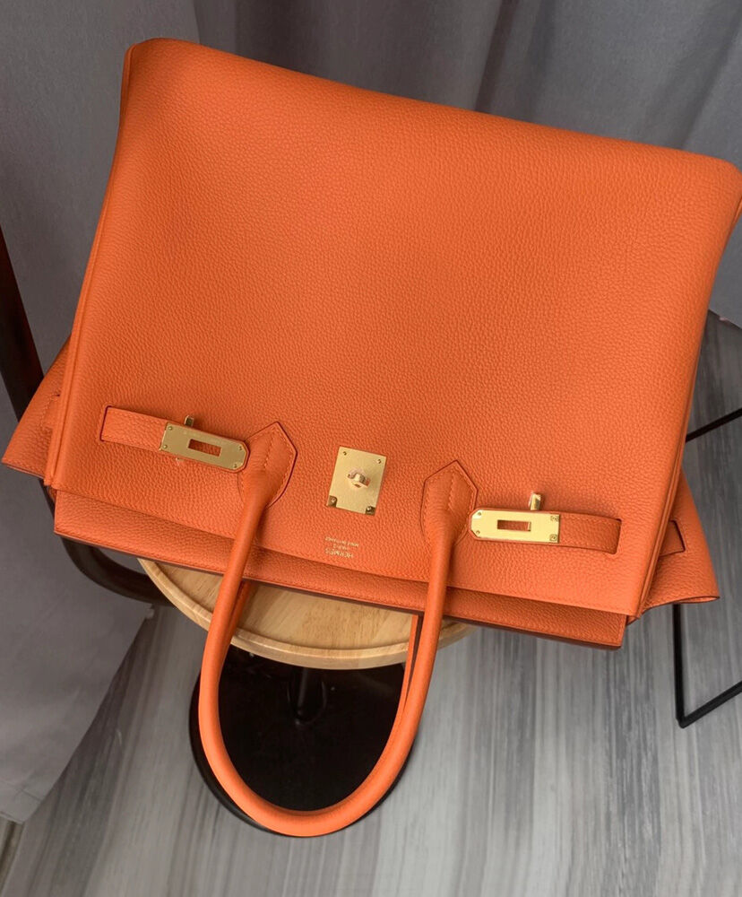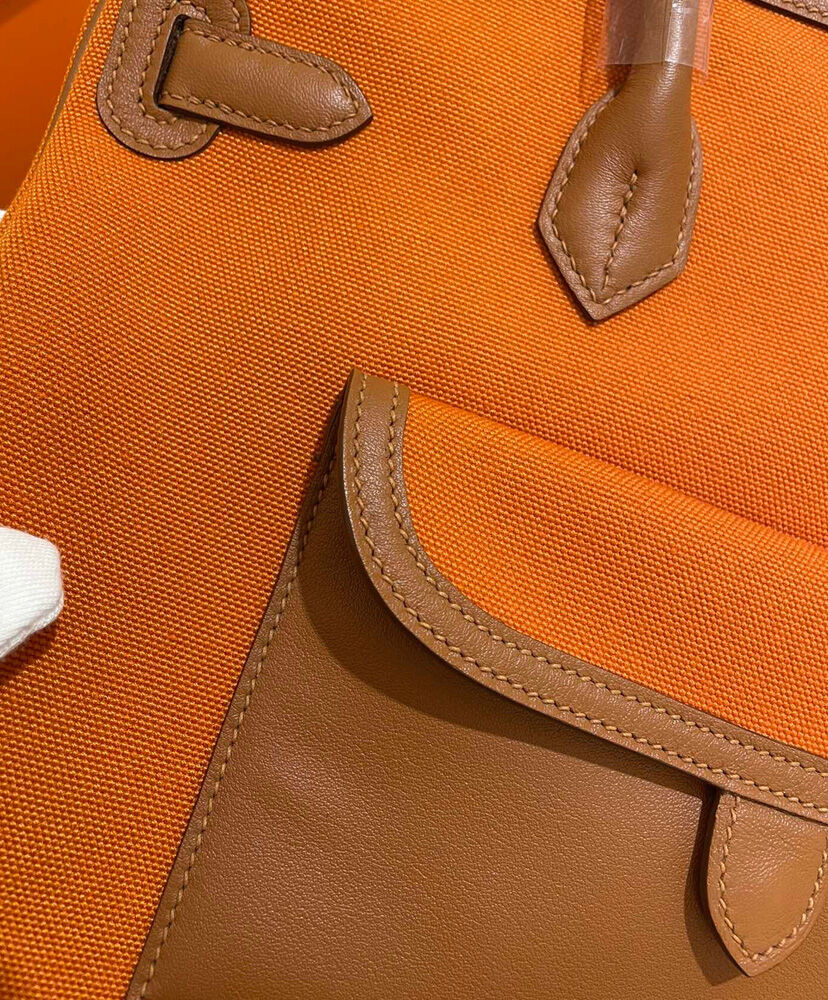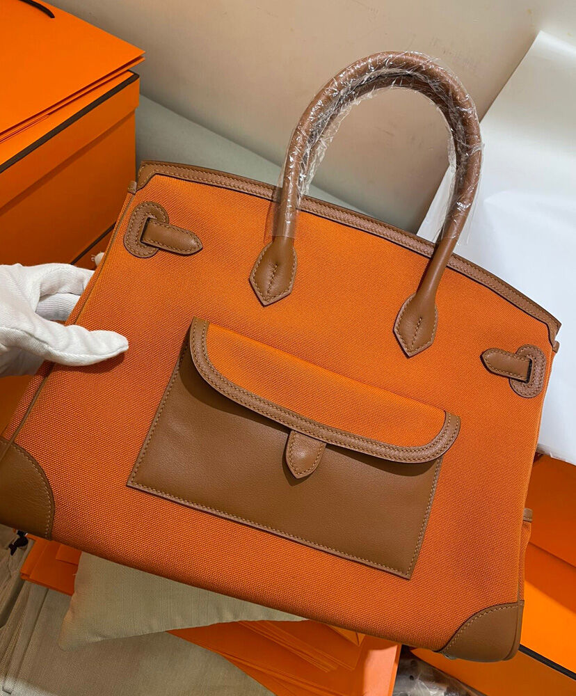 Hermes Birkin 35 Canvas Swift Leather Cargo Orange