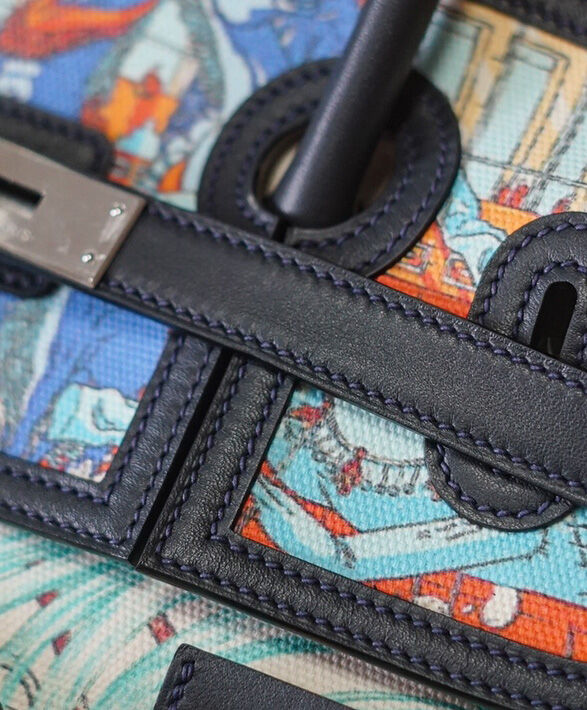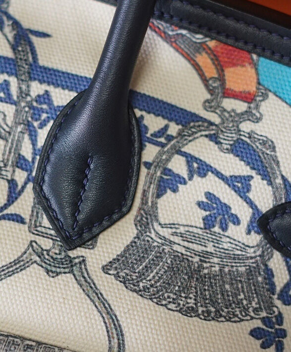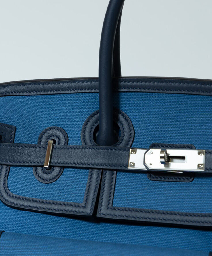 Hermes Birkin 35 Canvas Swift Leather Cargo Blue