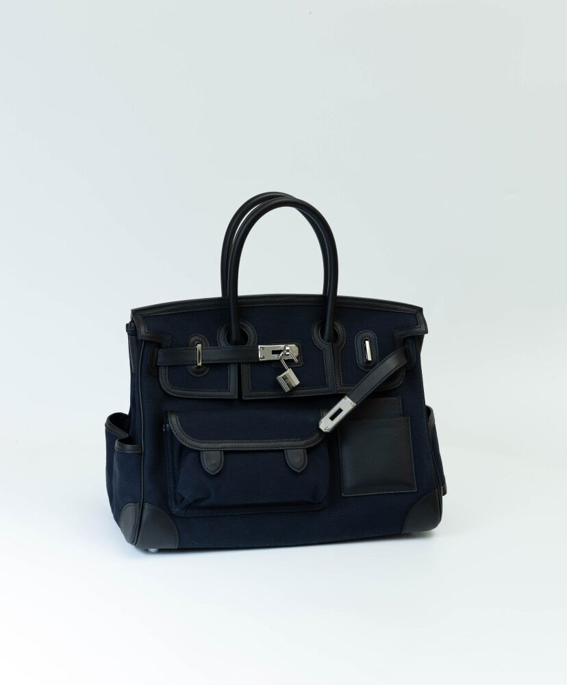 Hermes Birkin 35 Canvas Swift Leather Cargo Dark blue