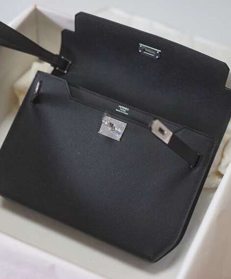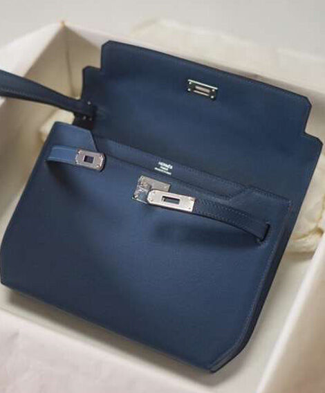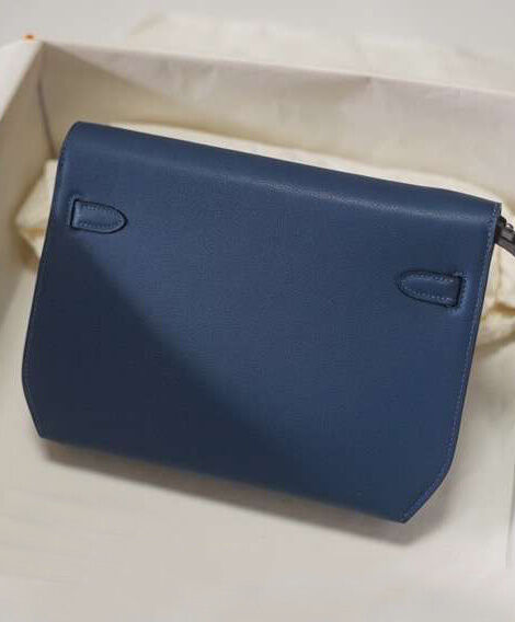 Hermes Kelly Depeches 25 Pouch Dark Blue